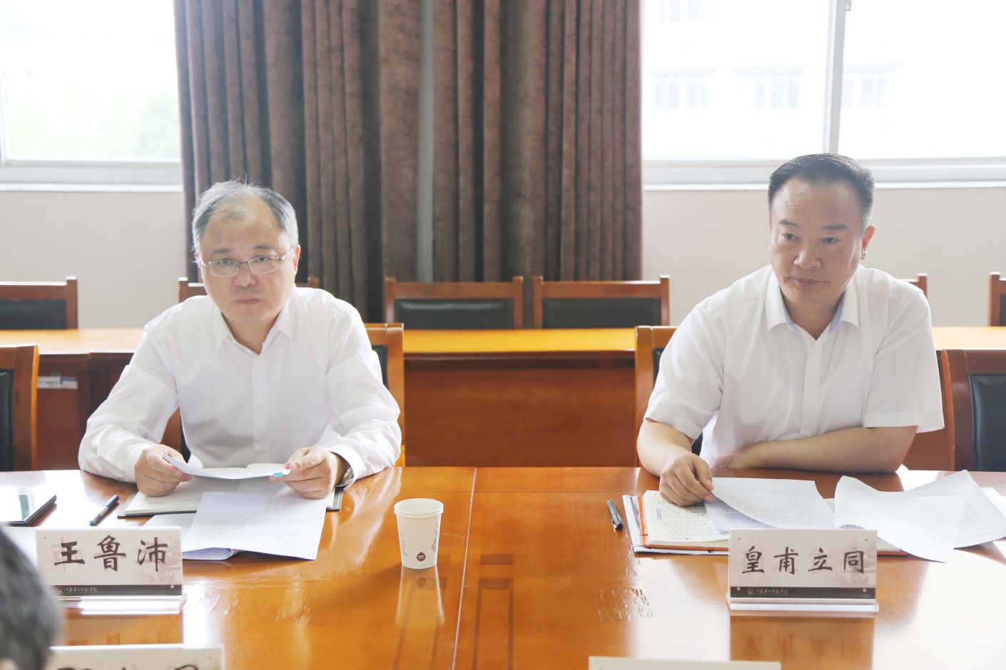 王鲁沛书记与皇甫立同副校长听取汇报,充分肯定了省师干训中心和继续教育学院的工作成绩和特色亮点。要求师干训中心通过科研成果转化、示范项目辐射、课程资源建设、精准帮扶送教发挥省级教师发展机构的重要作用,高质量、示范性的完成省厅的工作任务。继续学院要进一步明确办学定位、提升办学规模、拓宽办学渠道、打造办学特色、发挥办学优势,省师干训中心与继续教育学院要通过人员互通、课题研究、项目合作、方式创新等和二级学院一起积极探索职前职后融通的教师教育新路径、新模式。