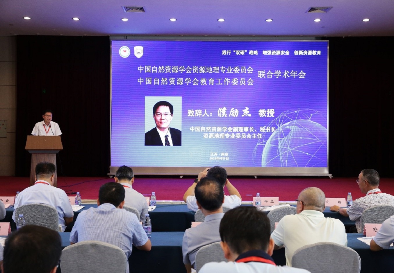 中国自然资源学会副理事长、秘书长、资源地理专业委员会主任濮励杰教授在致辞中感谢会议承办单位师生为本次会议的成功举办做出的贡献。他表示专家学者等与会代表将围绕资源地理和资源教育领域的新理念、新范式、新方法、新技术等科学命题进行探讨。期待专家学者的相互交流将会促进资源地理和资源教育研究迈上新台阶。