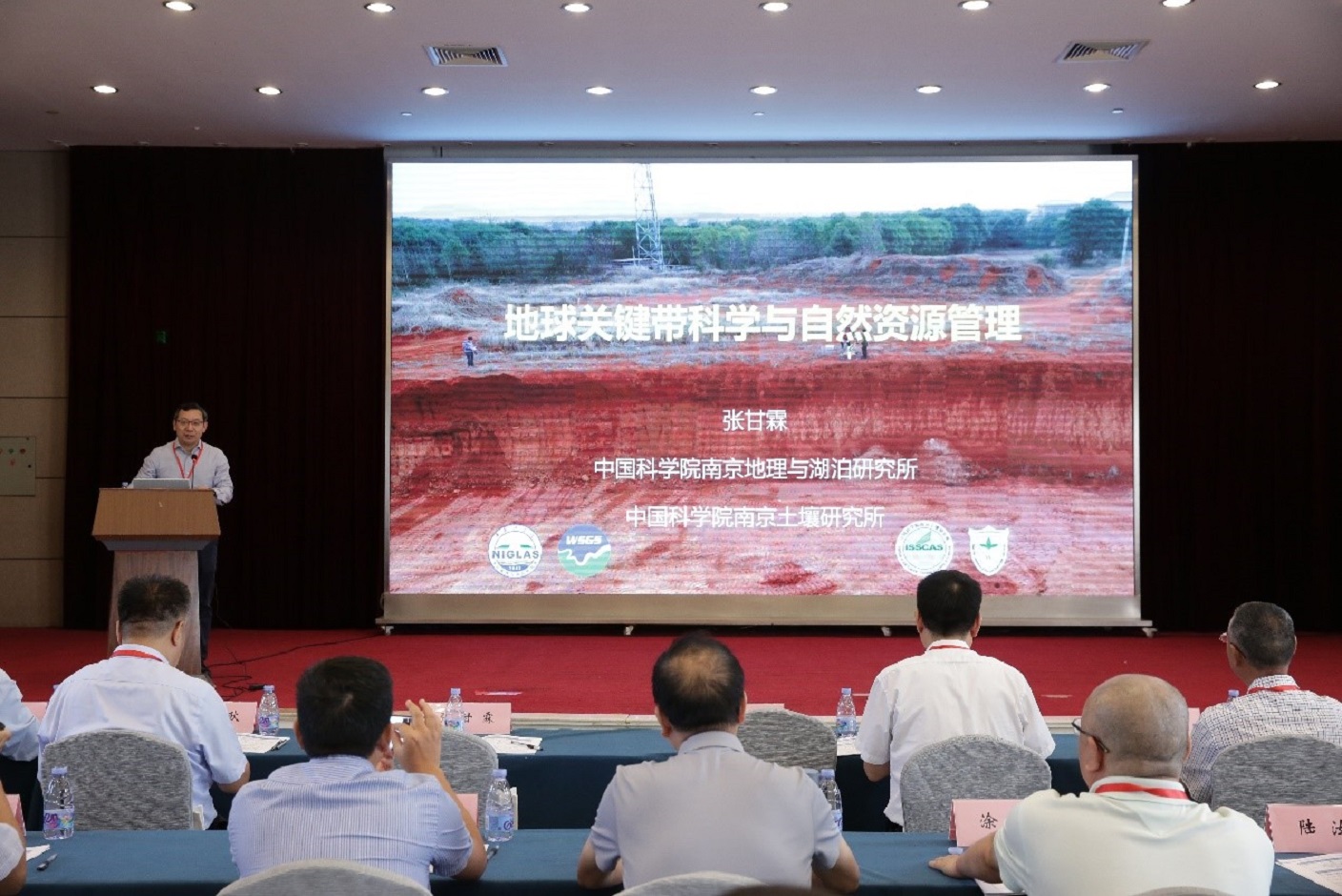 开幕式后,进行了大会主旨报告。中国科学院南京地理与湖泊研究所/中国科学院南京土壤研究所张甘霖研究员、欧洲科学院院士/南京信息工程大学姜彤教授、中国科学院地理科学与资源研究所沈镭研究员、南京大学黄贤金教授、江苏第二师范学院仇方道教授分别做了题为:“地球关键带科学与自然资源管理”、“气候变化适应:影响与风险的预报预警”、“资源地理学视角下的空间格局与安全边界问题探讨”、“生态文明背景下降碳增汇规划路径研究”、“中国省际边界区域数字金融发展对碳排放的影响研究”的大会主旨报告。中国自然资源学会副理事长/秘书长濮励杰教授、中国自然资源学会副秘书长王捷主任分别主持了大会主旨报告。