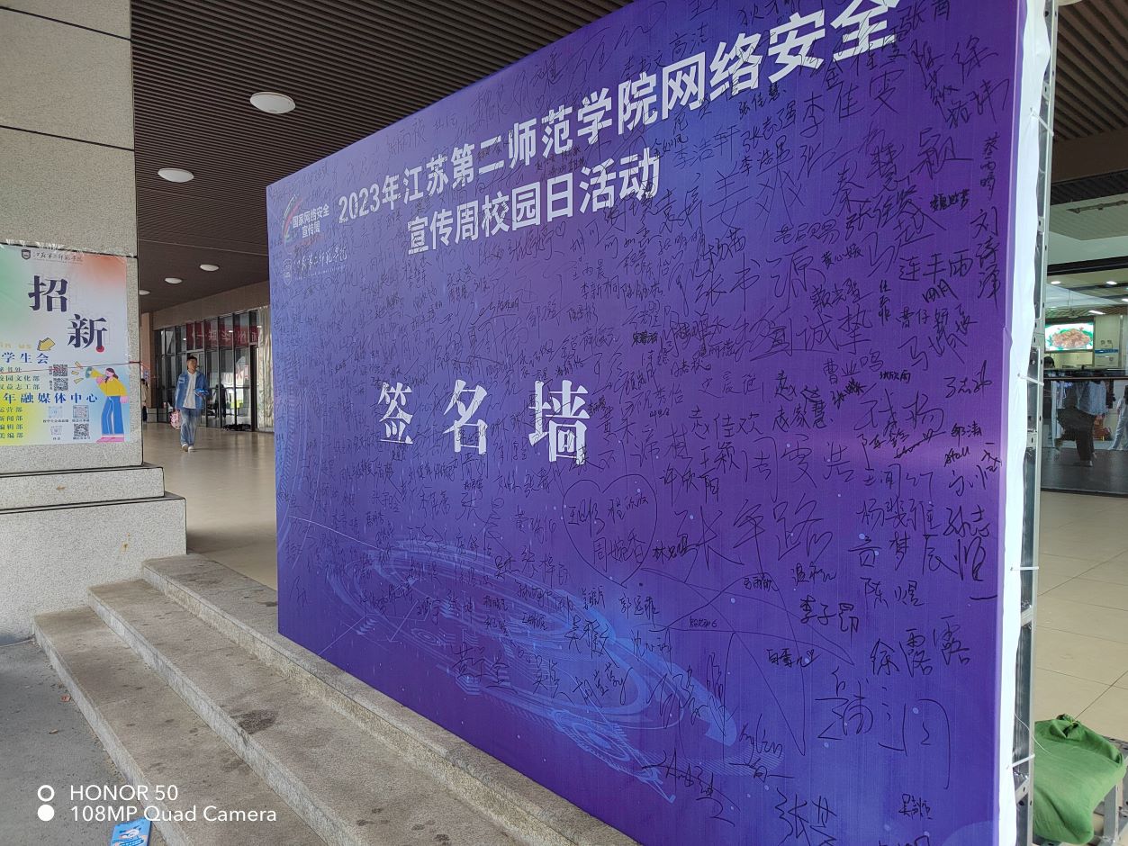 众多师生现场观摩了学校网络安全工作展板,学习了网络安全宣传手册,积极参与现场答题活动,并在签字仪式现场郑重签上自己的名字,积极表达要维护网络安全的意愿。