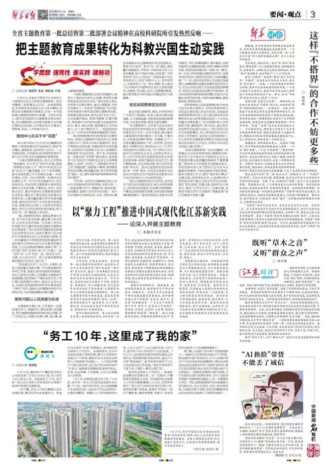 深入学习领会习近平总书记重要讲话精神、不断推进理论学习走深走实、掀起“牢记嘱托、感恩奋进、走在前列”大讨论……从仲春到初秋,江苏高校与科研院所的党员干部以实干作答,收获主题教育的累累硕果。
