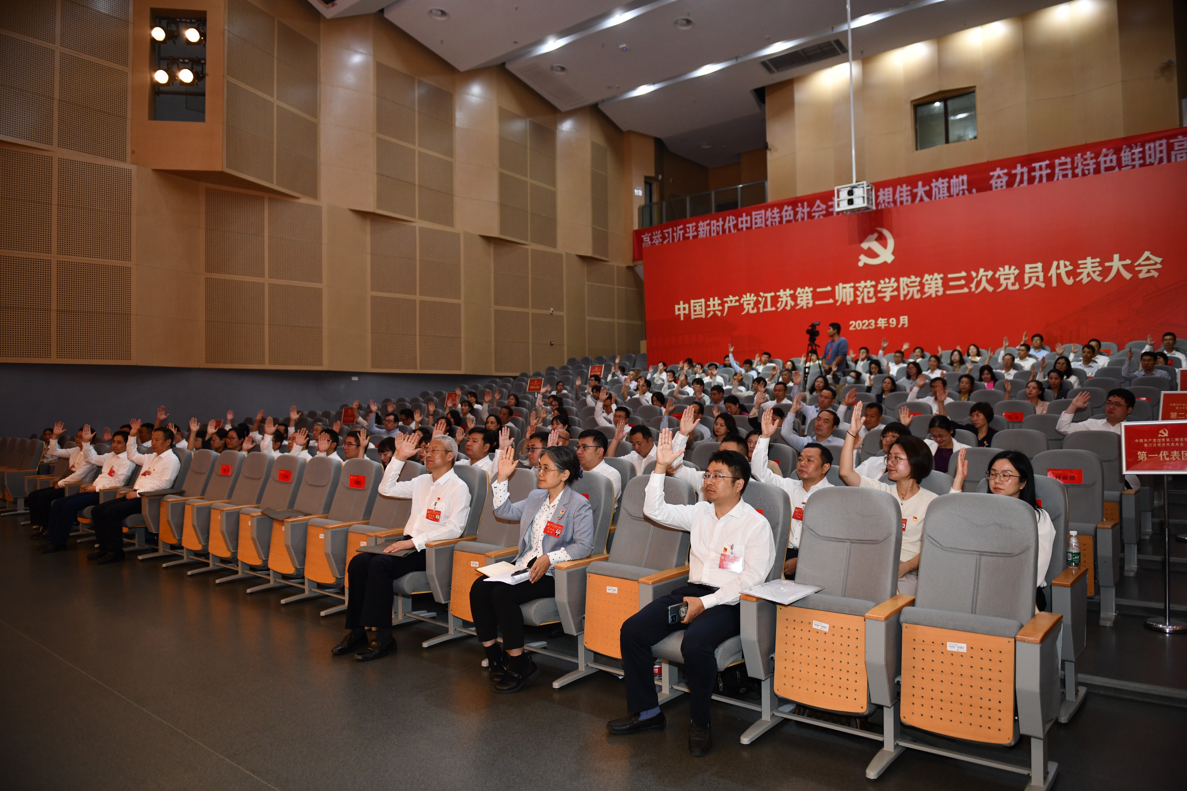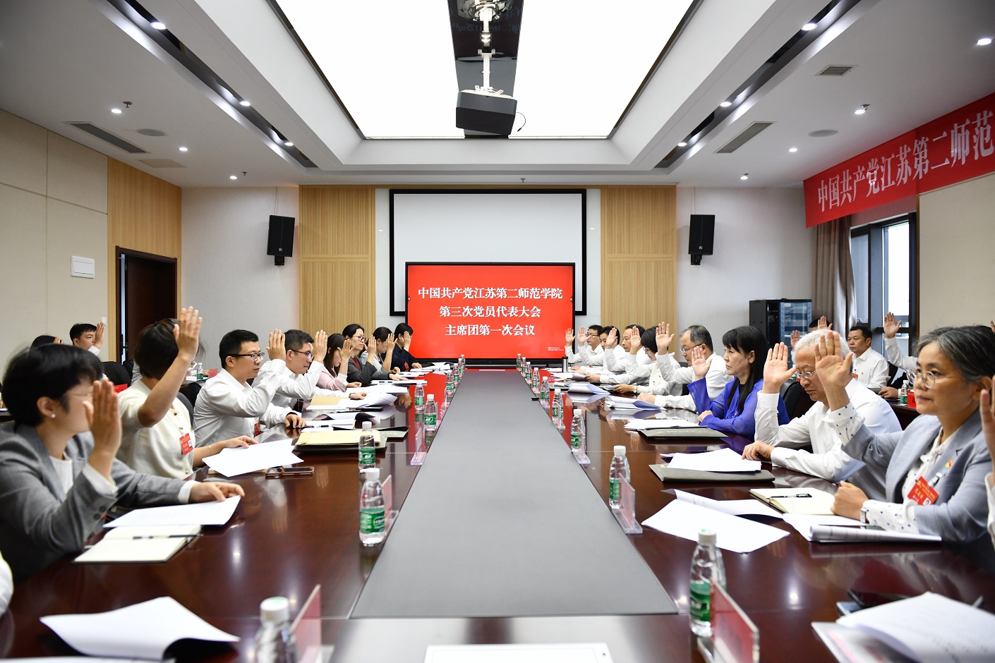 会议举手表决通过了《中国共产党江苏第二师范学院第三次党员代表大会代表资格审查报告》、中国共产党江苏第二师范学院第三次党员代表大会主席团成员及秘书长建议名单、《党费收缴、使用和管理情况报告》以及中国共产党江苏第二师范学院第三次党员代表大会议程。