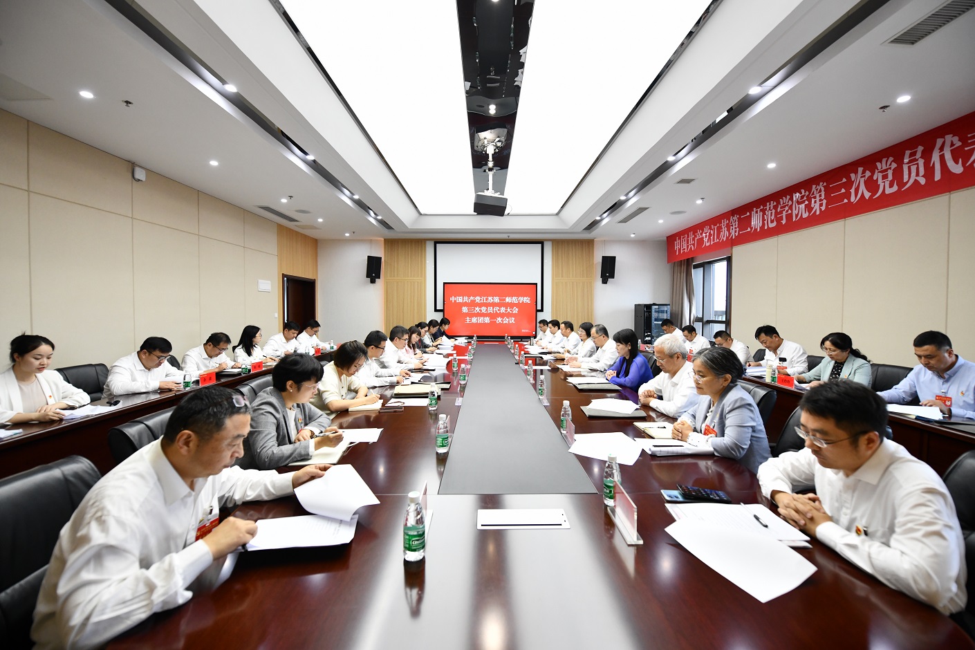 预备会议后,中国共产党江苏第二师范学院第三次党员代表大会主席团第一次会议在石湫校区崇德楼318会议室召开。会议由王鲁沛主持。