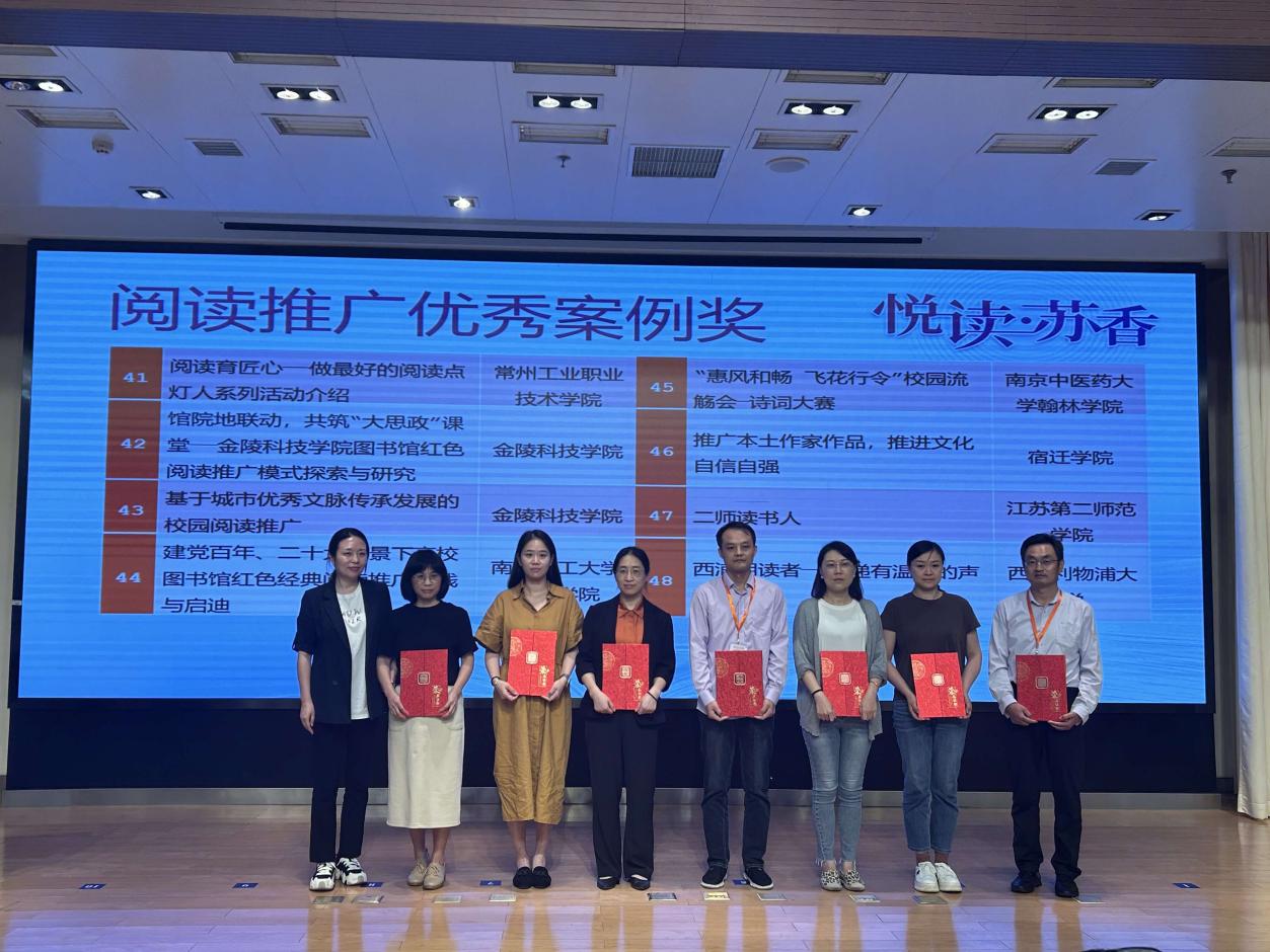9月22日,“悦读 苏香”暨江苏高校阅读推广精品案例交流会在南京大学召开,南京大学党委常委、副校长王振林,江苏省教育厅一级调研员蔡华,江苏省人大科教文卫委员会委员邵进,南京图书馆党委书记戴洪宇等出席会议。全省高校150多名代表出席本次会议。我校图书馆提交的案例“二师读书人”荣获江苏省高校图书馆阅读推广优秀案例奖。图书馆副馆长康微代表图书馆领奖。