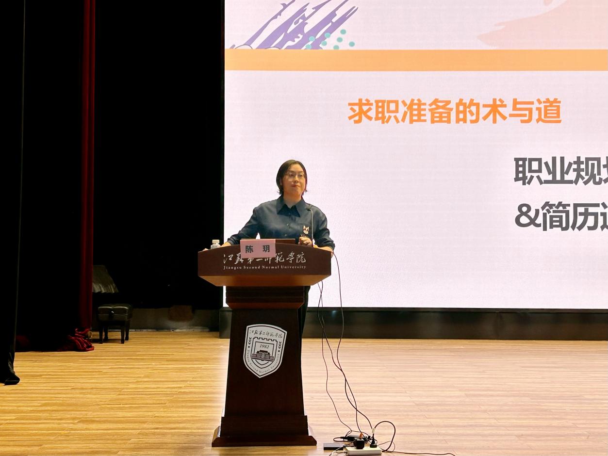 为帮助毕业生树立正确的职业观,提升学生求职技能,理清求职目标及方向,9月27日下午,招就处邀请了前程无忧职场导师、国家一级人力资源管理师、国家认证职业生涯规划师、测评师陈玥来我校开展了题为“求职准备的术与道——职业规划的几个视角&简历通关秘籍”讲座。讲座由招就处副处长李佶莲主持,全校共有300余名学生参加。