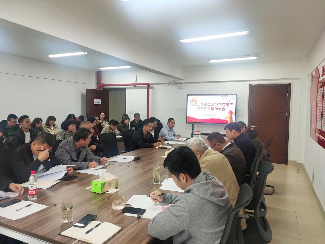 会上,党总支书记何磊带领大家认真学习党委书记王鲁沛同志在校第三次党代会上所作的题为《弘扬践行教育家精神,勇担教师教育使命,奋力开启特色鲜明高水平大学建设新征程》的工作报告。何磊指出,学校第三党代会是在全校上下深入学习贯彻党的二十大精神,开展学习贯彻习近平新时代中国特色社会主义思想主题教育取得丰硕成果之际,召开的一次十分重要的会议,是全校师生政治生活的一件大事。王鲁沛的报告高瞻远瞩、立意深远,令人备受鼓舞,报告从过去五年的工作和转设十年来的历史性成绩,坚决扛起新征程新的光荣使命,以高质量发展奋力书写事业新篇章,以高质量党建引领事业高质量发展四个方面全面回顾总结了过去五年学校锐意进取、开拓发展所取得的辉煌成绩,并对今后五年的发展目标任务进行科学规划和精心部署,展现了江苏第二师范学院紧跟时代潮流,矢志建设特色鲜明高水平大学的责任担当和决心。