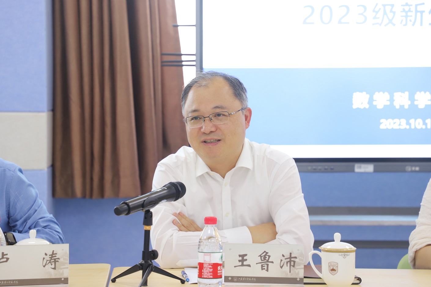 10月11日下午,校党委书记王鲁沛与数学科学学院2023级新生代表交流座谈,数科院党政负责人、学工处处长助理以及本科生辅导员参加了本次活动。座谈会由卢涛主持。