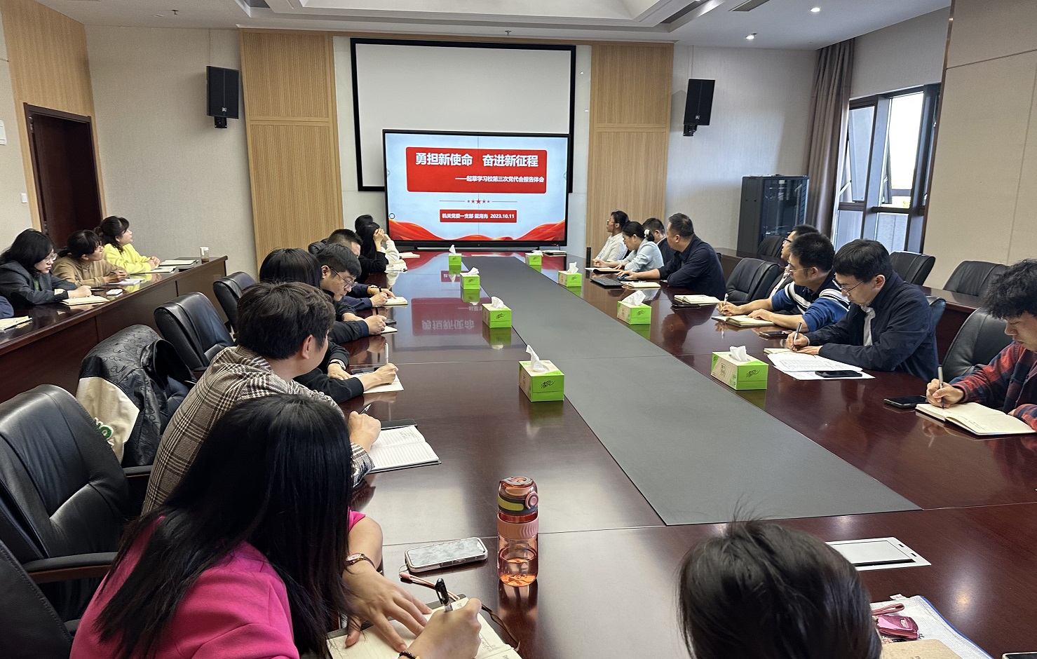 为深入学习宣传贯彻学校第三次党代会精神,切实用党代会精神武装头脑、指导实践、推动工作, 10月11日下午,机关党委举行理论学习中心组(扩大)会,专题学习党代会精神。党代会报告起草组成员、发展办主任戴海光作题为“勇担新使命 奋进新征程”的党代会精神专题辅导报告。机关党委委员、党员代表等参加报告会。