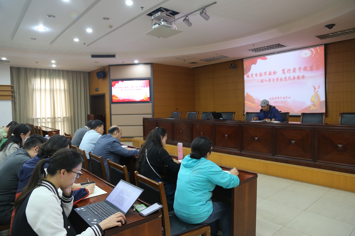 10月11日,江苏省师干训中心组织召开政治理论学习会议,认真学习传达学校第三次党代会精神及党委第三届一次全会第二次(扩大)会议精神,并就学校网络安全工作专题会议内容进行详细说明。江苏省师干训中心直属党支部书记邵红军主持会议。