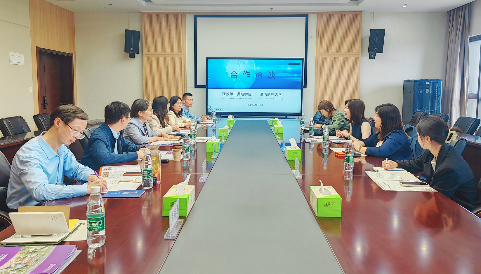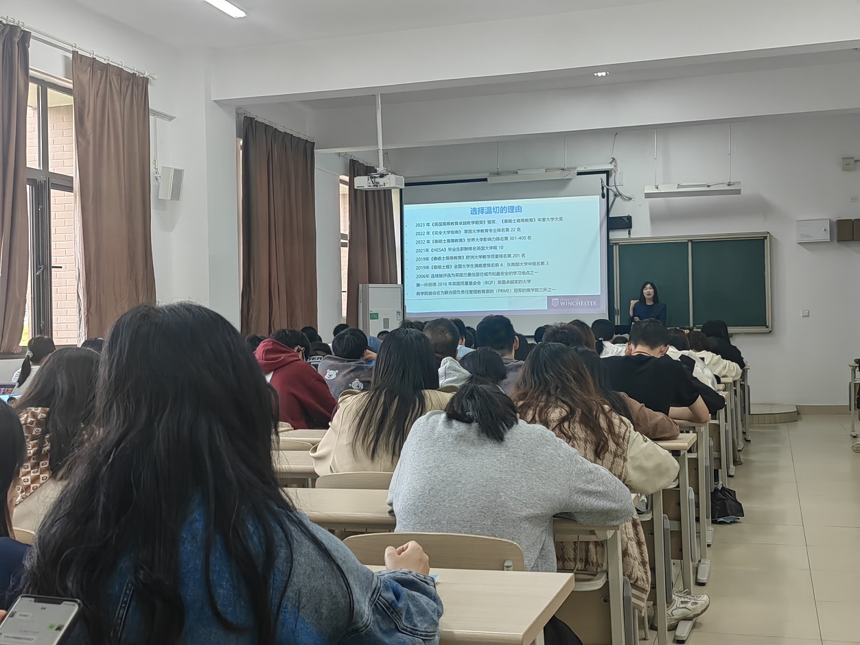 近日,英国温切斯特大学(University of Winchester)代表团来访。副校长赵玉蓉代表学校接待了代表团。学前教育学院宋学军书记、外国语学院张莉院长、商学院张敏副院长、体育学院李鹏副院长、美术学院王玲玲书记、音乐学院周乐副院长、传媒学院章力副院长、国际处梁婧玉处长参加了会谈交流。会谈交流中,双方代表分别介绍了各自学校的基本情况,并围绕师生互访、硕士生项目与合作办学进行了深入交流。会后,英国温切斯特大学的国际招生主任Maggie Lin为石湫校区的学生做了精彩讲座。