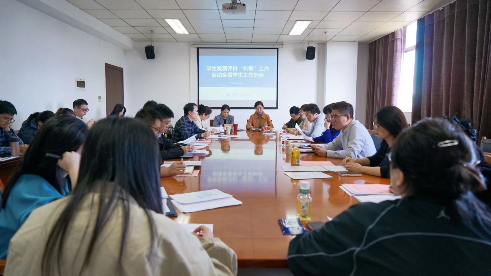 招生就业处处长司南对本学期学生就业工作、考研动员和职业生涯规划大赛等作出工作部署安排。团委书记刘姝围绕“接力新长征”育人实践创新计划,各学院如何结合专业特色实施该计划的路径、载体和特色进行了深入阐述。大学生心理健康教育中心主任周韵从学生心理危机上报、处理、日常工作注意事项等方面汇报讲评了各学院心理工作的重点和难点,并对我校2023级新生入学心理普测情况进行了说明。