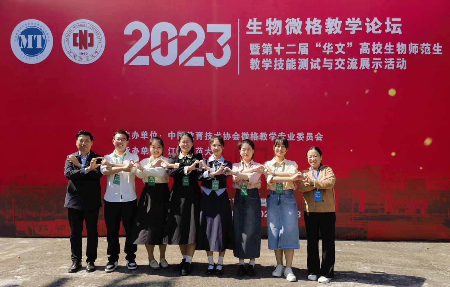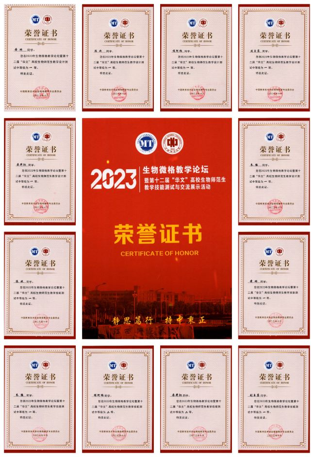 二〇二三年十月二十日至二十三日,中国教育技术协会2023年生物微格教学论坛暨第十二届“华文”高校生物师范生教学技能测试与交流展示活动在江西省南昌市江西师范大学隆重举行,汇聚了全国80所高校445名选手和148名指导教师,盛况空前。江苏第二师范学院生命科学与化学化工学院在高学林、黄雪方两位老师的带领下由2020级生物科学(师范)专业陈欢、朱猛、刘玉蓉、黄琳、程阿楠、栾羿阳六名师范生组成代表队参赛。
