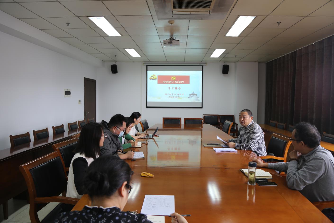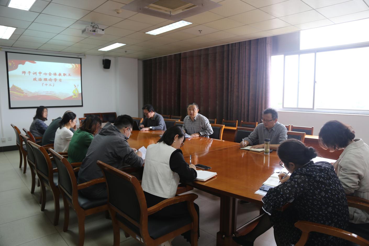 10月25日下午,师干训中心直属党支部组织全体教职工在10月11日全员逐字逐句学习领会学校党代会报告的基础上,邵红军书记带领大家一起分析研讨了师干训中心的工作任务清单,并对下半年的主要工作提出了要求。邵书记强调我们一方面要不折不扣的完成下半年的目标任务,另一方面要从意识形态、网络安全、廉洁自律等方面严格要求自己、规范自己的言行。他要求全体党员干部要率先垂范、扛起责任,为中心的高质量发展带好头。