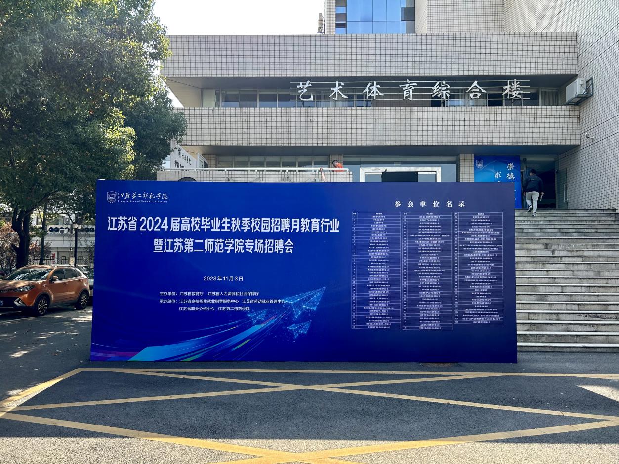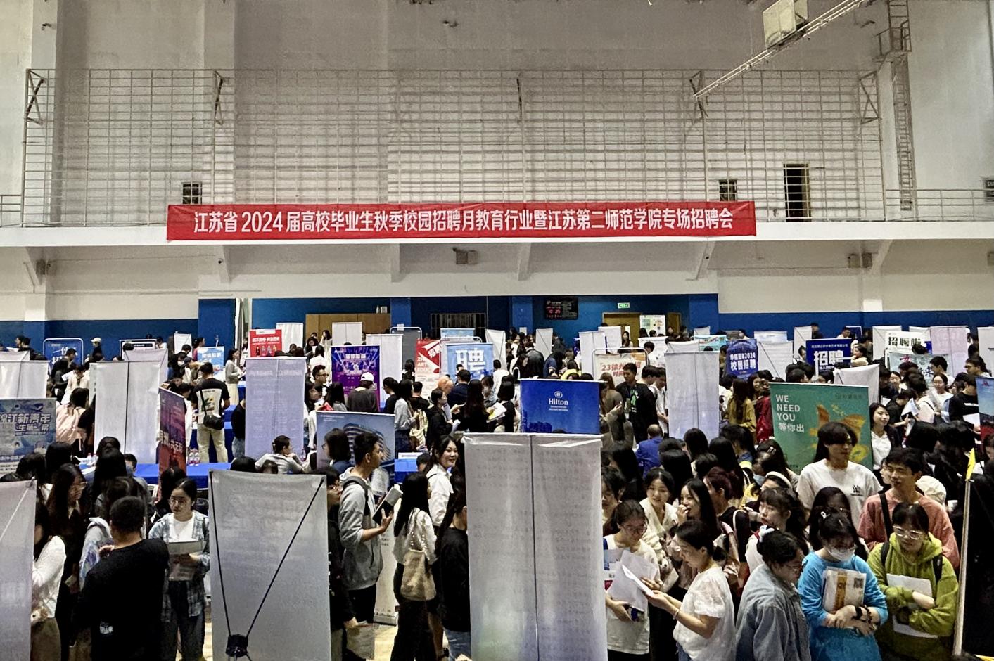 11月3日上午,由江苏省教育厅、江苏省人力资源和社会保障厅主办,我校承办的江苏省2024届高校毕业生秋季校园招聘月教育行业暨江苏第二师范学院专场招聘会在草场门校区举行。招生就业处全体人员、各二级学院就业工作负责人、就业专员到现场与用人单位沟通交流,1000余名毕业生参加了招聘会。