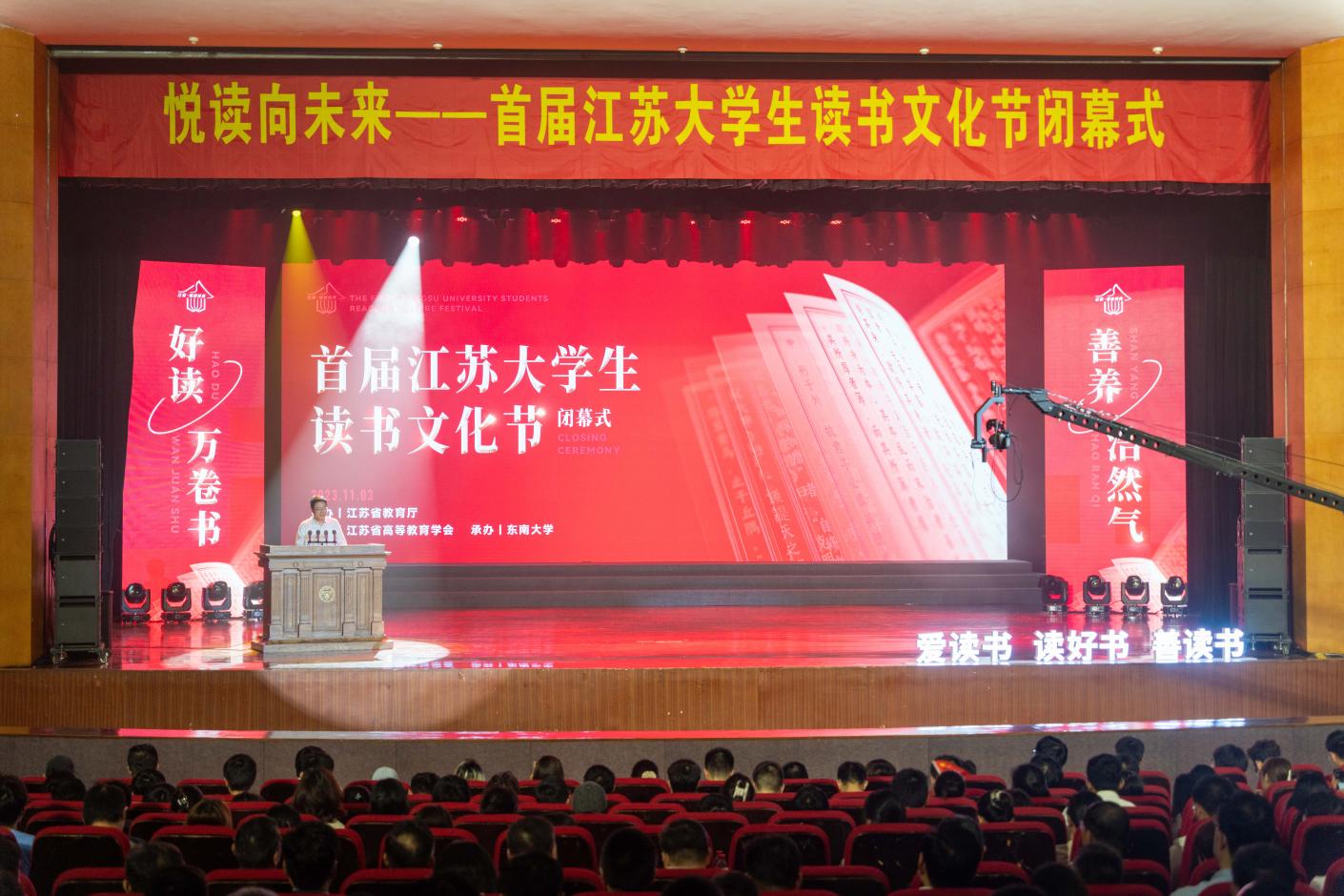 11月3日,首届江苏大学生读书文化节闭幕式在东南大学九龙湖校区举行。省教育厅厅长、党组书记、省委教育工委书记江涌出席并讲话,省高等教育学会会长丁晓昌、东南大学党委常务副书记刘攀、省文旅厅副厅长钱钢、省教育厅副厅长杨树兵等出席活动。省委宣传部、省委网信办、省文旅厅、省总工会、团省委、省妇联、省科协、省作协、省社科联等负责同志,全省部分高校领导、师生代表共计1200余人参加。全省高校10万余人次同步在线观摩。