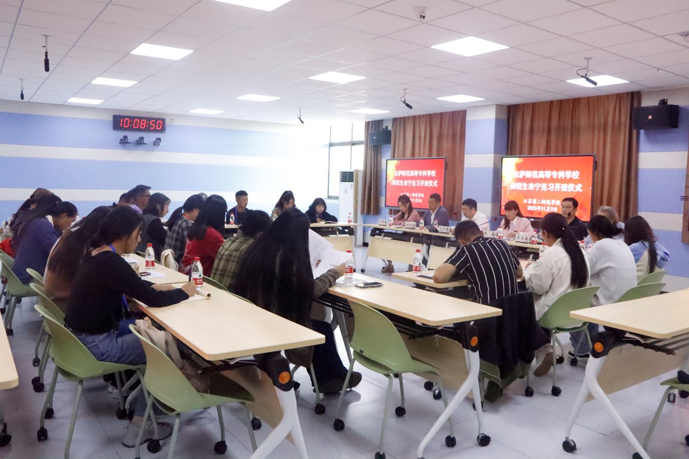 拉萨师专来宁见习是我省援藏重点项目之一,得到了江苏省教育厅和西藏教育厅的大力支持,今年是拉萨师专师专师生第7次来宁见习,本次开班仪式的成功举办为见习活动奠定了良好的基础。