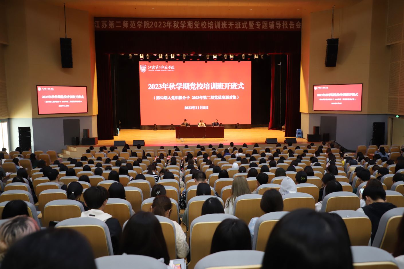 为深入学习贯彻习近平新时代中国特色社会主义思想和党的二十大精神,切实提升入党积极分子和党员发展对象的政治素质和理论修养,11月8日下午,我校在石湫校区尚美楼二楼报告厅举办第52期入党积极分子、2023年第二期党员发展对象培训班开班式暨专题辅导报告会。党委常委、副校长赵玉蓉出席会议并讲话,党委常委、党委宣传部部长李安林及438名培训班学员参加本次开班式,我校马克思主义学院院长刘素梅作专题辅导报告。开班式及专题辅导报告会由党校常务副校长兼党委组织部、党委统战部副部长眭春良主持。