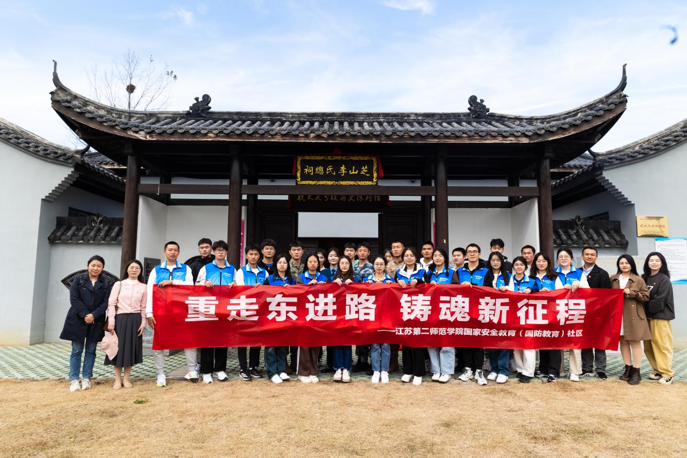 “真理的英雄们没有死,他们含笑矗立在铜山颠”,伴随着悲壮的歌声,江苏第二师范学院师生在铜山战斗纪念广场了解了抗大九分校学员在芝山学习、训练、生活,最后和老百姓一一道别,与敌人殊死战斗的故事。随后,师生40余人翻山越岭,穿林越隘,从铜山出发重走新四军东进路,沿途聆听东进路上的红色经典故事,重温入党誓词,体验回顾中国共产党筚路蓝缕、披荆斩棘的奋斗历程,用脚步感受信仰,涵养家国情怀、锤炼意志品质、传承红色基因,担当时代责任和使命。退役大学生王佳慧表示“虽然时代在变,形势任务在变,但人民军队的本色始终都没有变,人民军队全心全意为人民服务的初心使命不能忘。我将终生践行誓言,为保护人民生命财产安全,始终不怕牺牲、冲锋在前。”