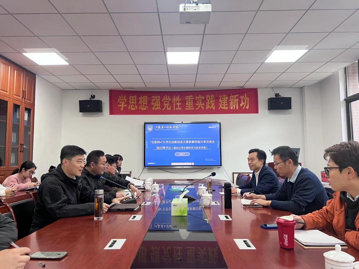 11月10日下午,扬州大学生物科学与技术学院党委书记陆江峰应邀来我院开展“互联网+”大学生创新创业大赛参赛经验分享交流会。学院党总支书记朱学伸、党总支副书记孙奕、全体辅导员、专业教师代表、学生代表参加会议。