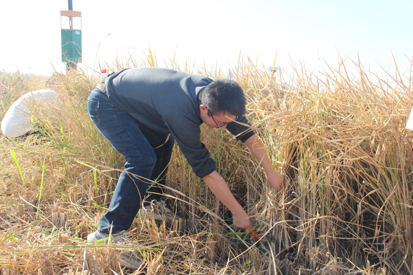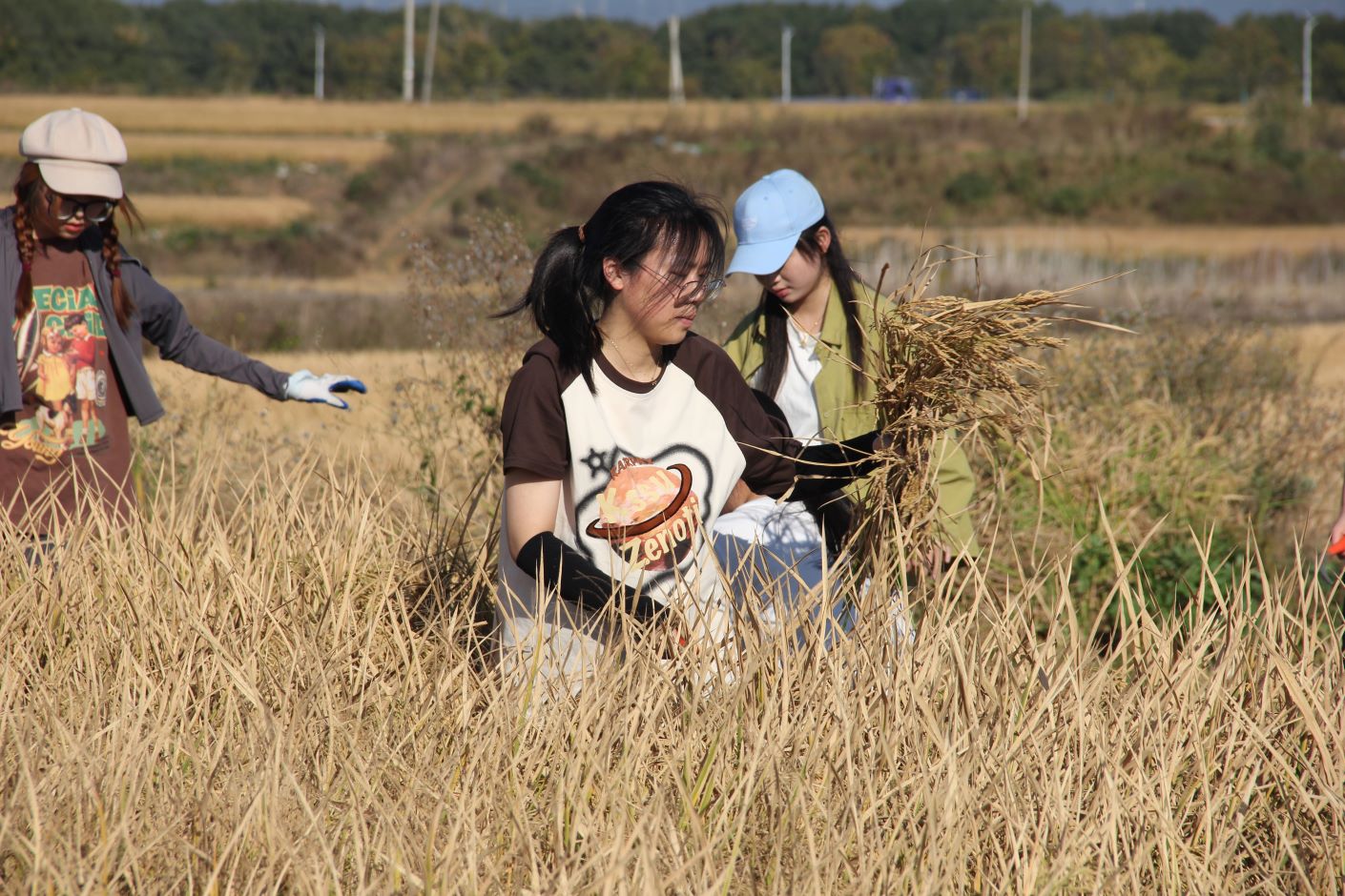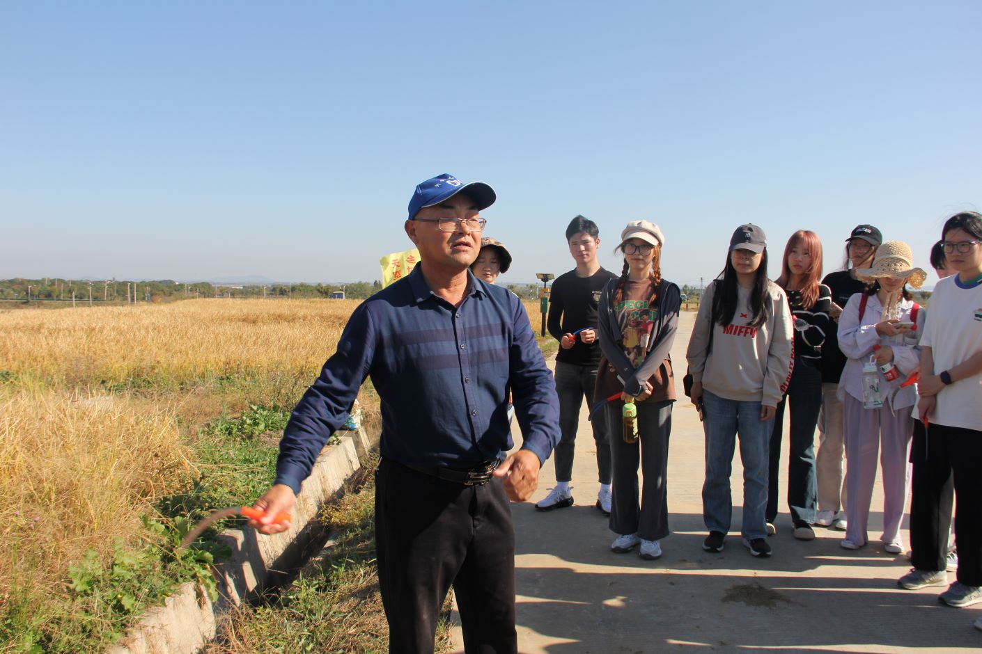 近日,我校外国语学院学生党支部书记王超和辅导员徐塬组织学生先锋队,赴向阳村开展劳动教育实践活动,帮助群众收割稻谷,共话丰收喜悦。此次活动主题为:党建引领铸“有恒工程” “五育并举”育时代新人 。向阳村汤玉琴书记给予了热情的接待。走进向阳村,一幅优美隽永的乡村图景缓缓打开——石臼湖畔浪潮翻涌,草木丰盛,金黄的稻田里一片丰收的景象。活动开始前,先由村里负责农业指导的老专家讲解收割水稻的要求并亲自下田示范,然后同学们便兴高采烈地忙活起来。