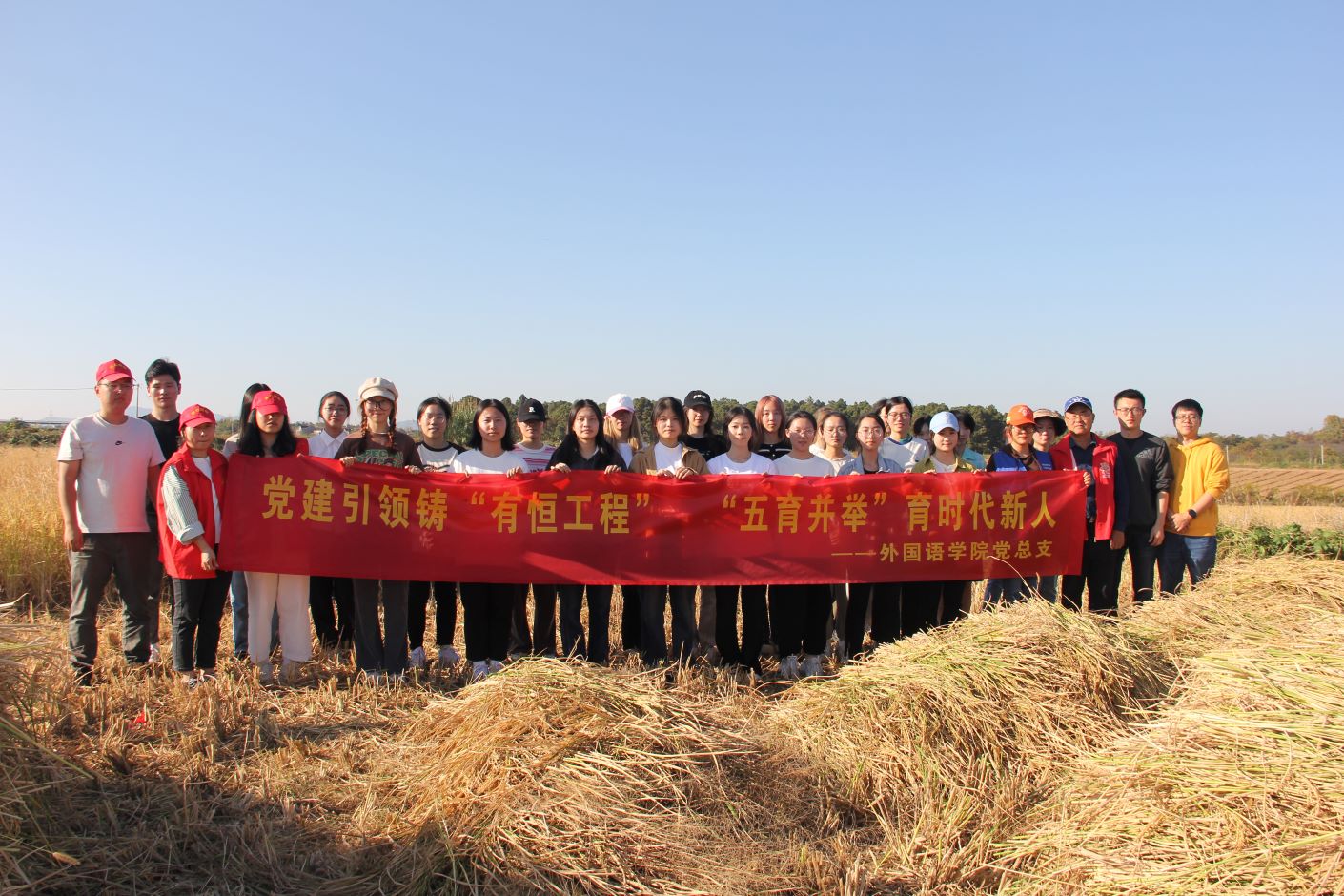 通过劳动教育实践活动,先锋队队员们认识了水稻,了解了农忙知识,增强了劳动实践技能,对劳动的意义有了更深刻的理解,进一步培养了良好的劳动观念、劳动情怀。此次劳动教育实践活动,帮助大学生们在劳动实践中体验获得感与幸福感,有助于增强自身综合素质,更好的肩负起时代赋予的重任。此次活动,也是外国语学院党总支与向阳村党总支校地共建的重要内容,把对学生的教育由学校延伸到乡间地头,同时也协助地方助农兴农,有力的支持了乡村振兴。