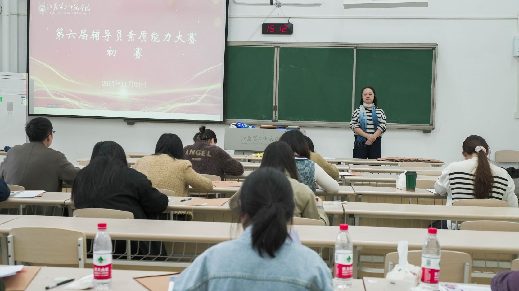 为落实立德树人根本任务,进一步提高大学生思想政治教育工作质量,提升辅导员队伍理论水平、职业能力和专业素养,11月22日下午,我校在石湫校区B2-107和草场门校区教育技术楼1004同步举行第六届辅导员素质能力大赛初赛。本次辅导员素质能力大赛分为初赛和决赛两个环节,初赛阶段主要进行基础知识测试和“生情熟知”测试,决赛阶段主要进行案例研讨和谈心谈话。全体专职辅导员参加此次比赛。