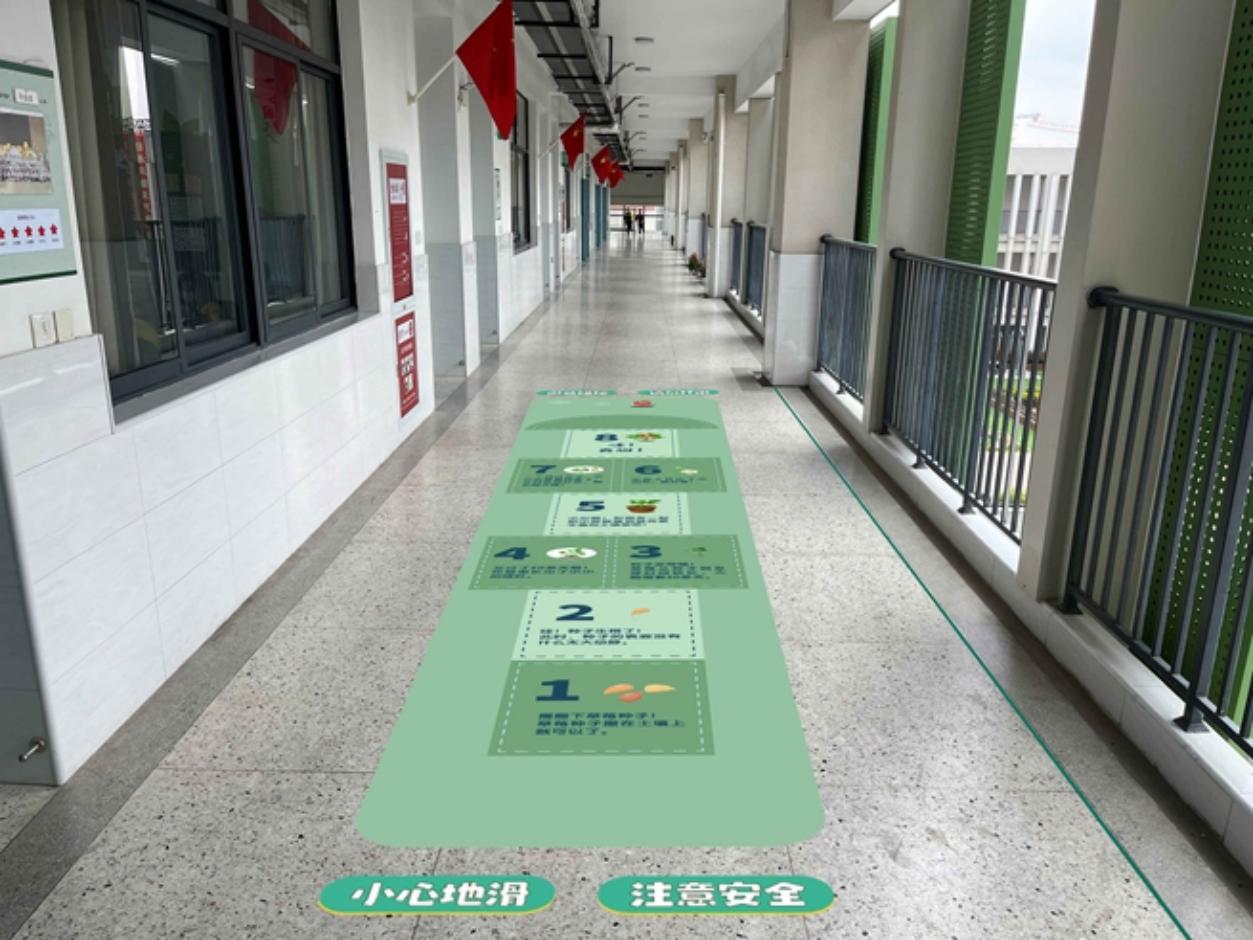 南师大附小铁北新城分校在教室走廊设计的“课间趣味+”。受访者供图