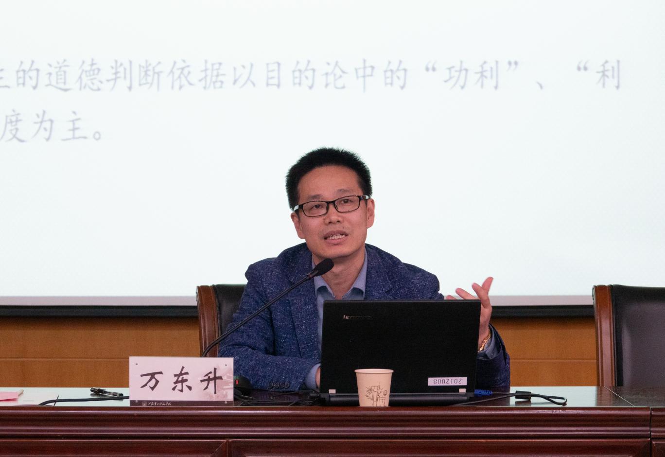 中国伦理学会会长、中国社会科学院哲学研究所、中国社会科学大学哲学研究院孙春晨教授以“中国式现代化进程中的教师道德素养和道德教育”为题,为与会人员作了精彩生动的学术报告。在对教师伦理与教师职业道德、经师与人师、教育家精神等进行区分与界定的基础上,重点对提升教师素养是中国式教育现代化的基础、教师对社会道德现状的正确认知是进行道德教育的前提进行论说,并就科技与伦理、人工智能与未来世界等热点问题进行了深入分析,回应了中国式现代化进程中的时代伦理之问,展现了中国式现代化与伦理审视、道德教育的智慧魅力和现代价值。