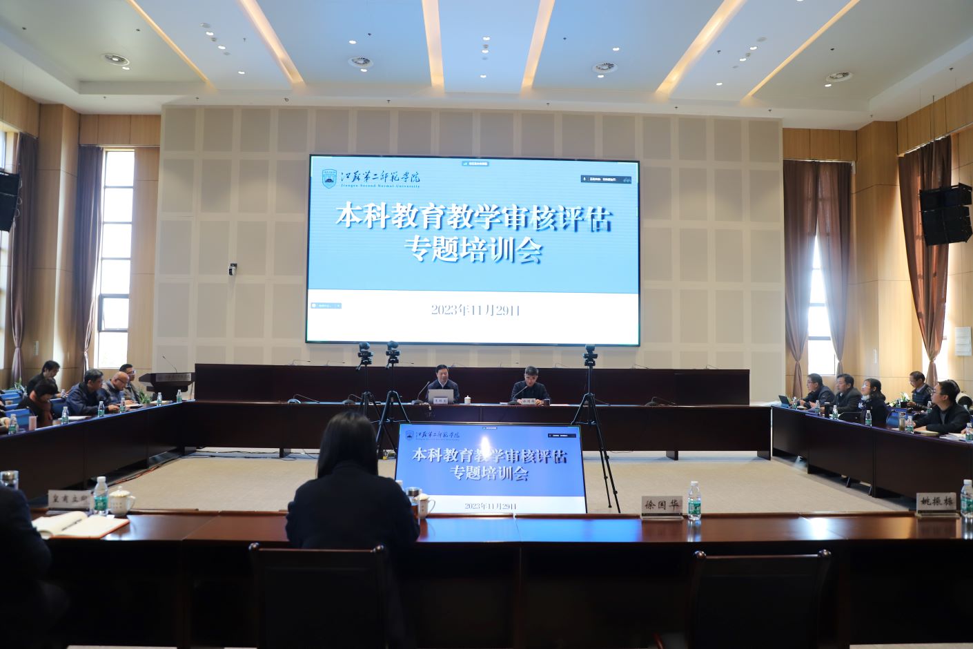 11月29日上午,我校在石湫校区敬业楼107报告厅召开本科教育教学审核评估专题培训会,江苏理工学院原党委书记朱林生教授作题为《新一轮审核评估背景、要义与实施要点》的报告。全体在宁校领导出席会议,各二级学院党总支书记、院长、分管教学副院长,各职能部门负责人现场参加培训;其他教职工线上参加培训。会议由校长徐国华主持。