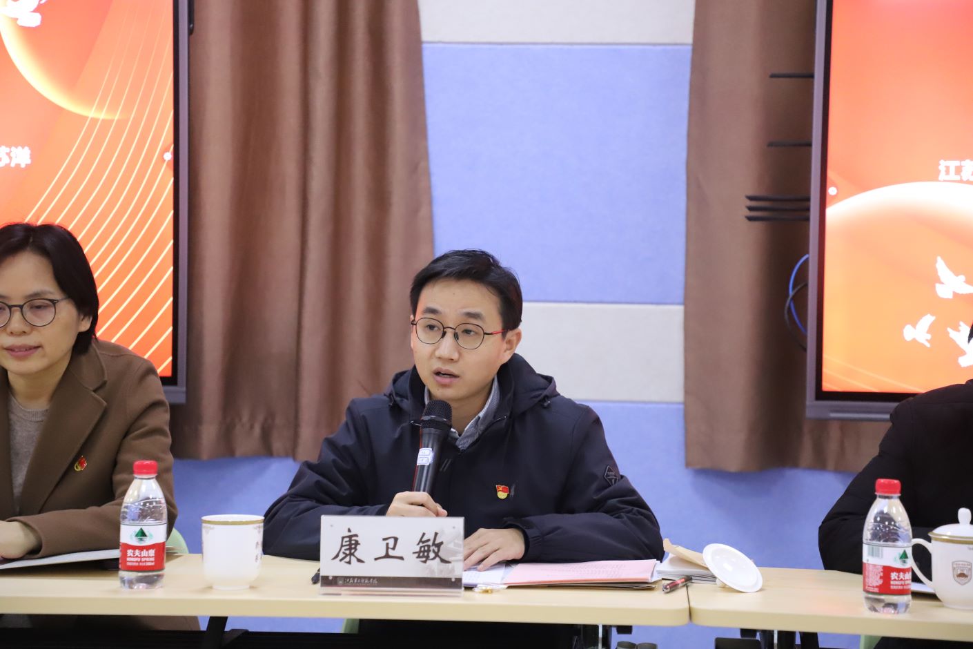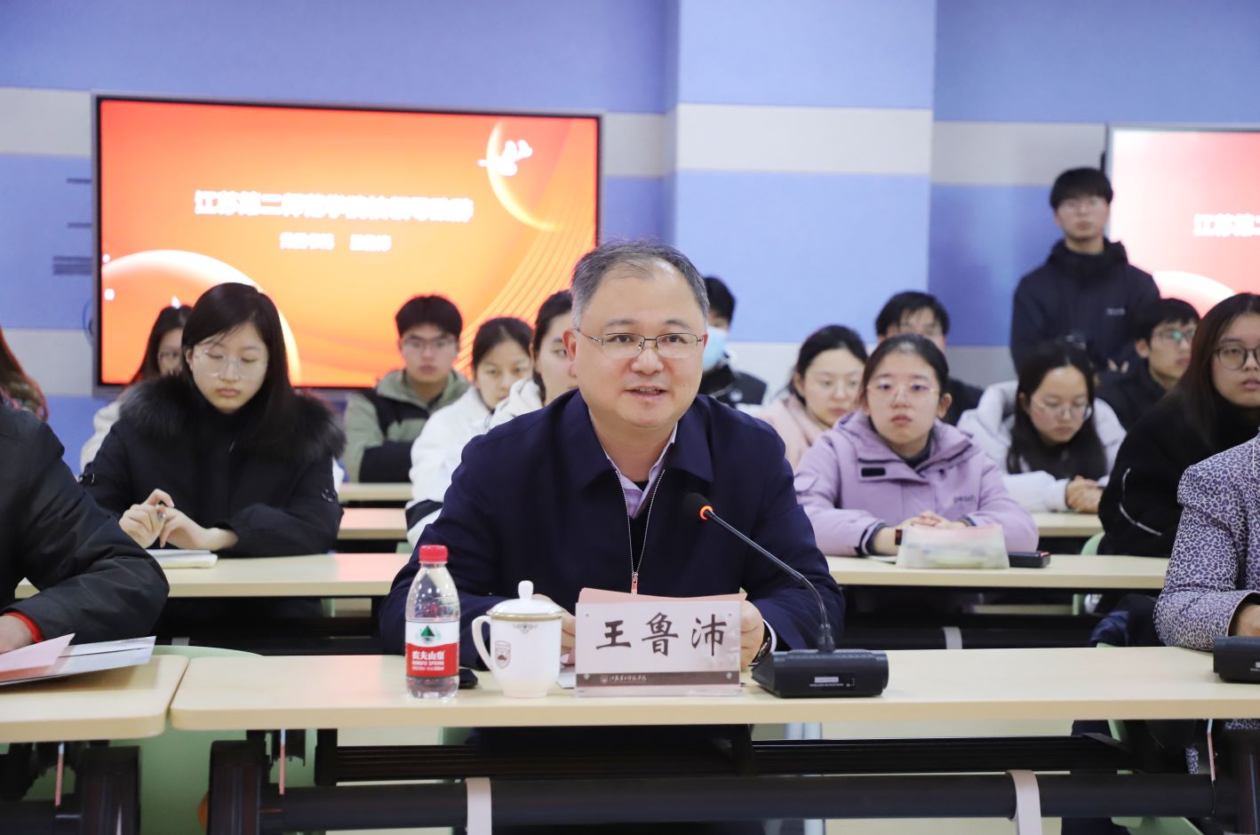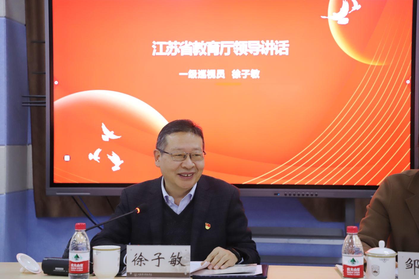 为深入学习贯彻习近平新时代中国特色社会主义思想,弘扬践行教育家精神,12月1日下午,我校举办“乐教爱生,躬耕教坛——大力弘扬教育家精神”主题班会暨江苏省教育厅社政处党支部与江苏第二师范学院党团联学共建活动。省教育厅一级巡视员徐子敏、校党委书记王鲁沛等出席,省教育厅社政处党支部党员同志,我校党委组织部、党委宣传部、党委学工部、文学院、大艺中心等相关单位负责同志及党(团)员师生代表参加。活动由党委常委、副校长赵玉蓉主持。