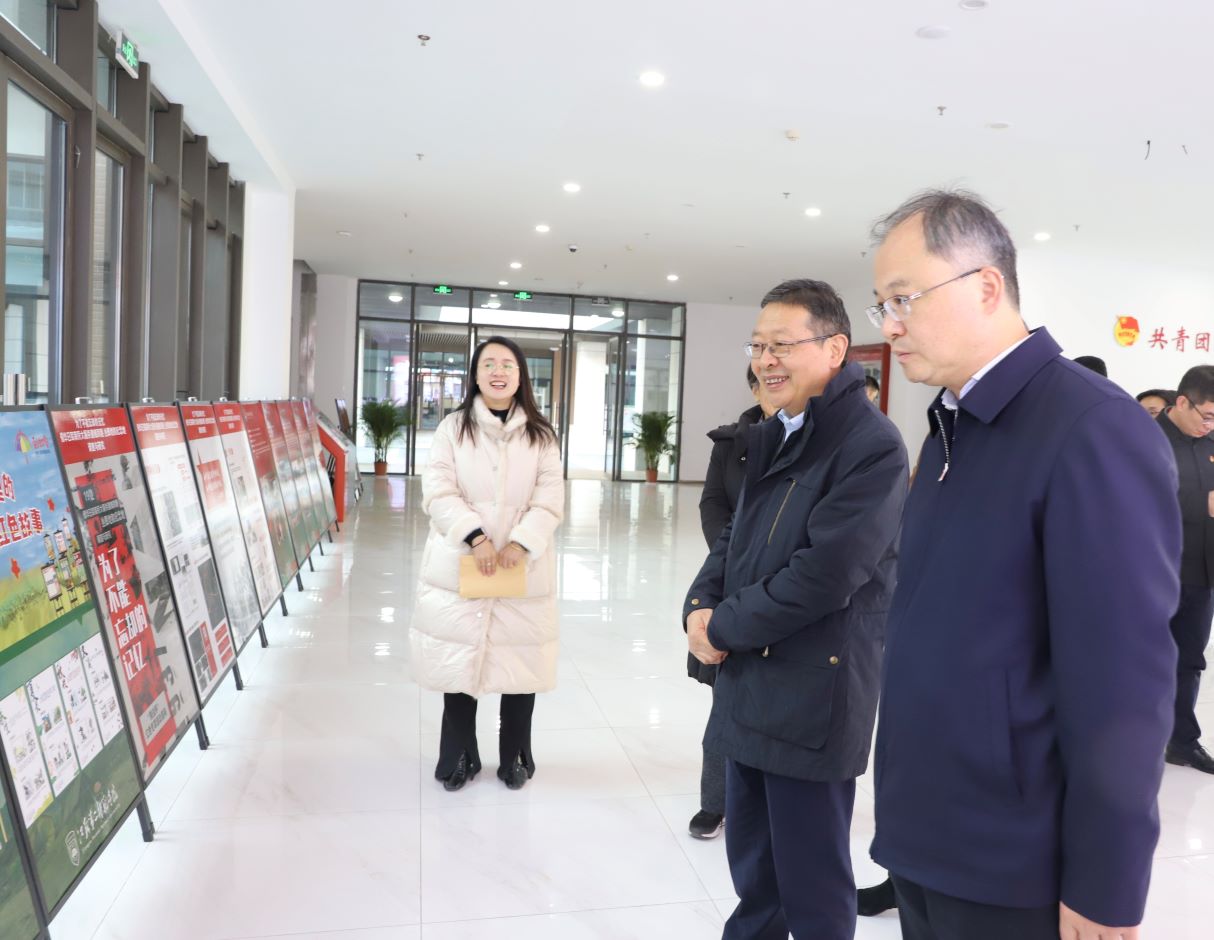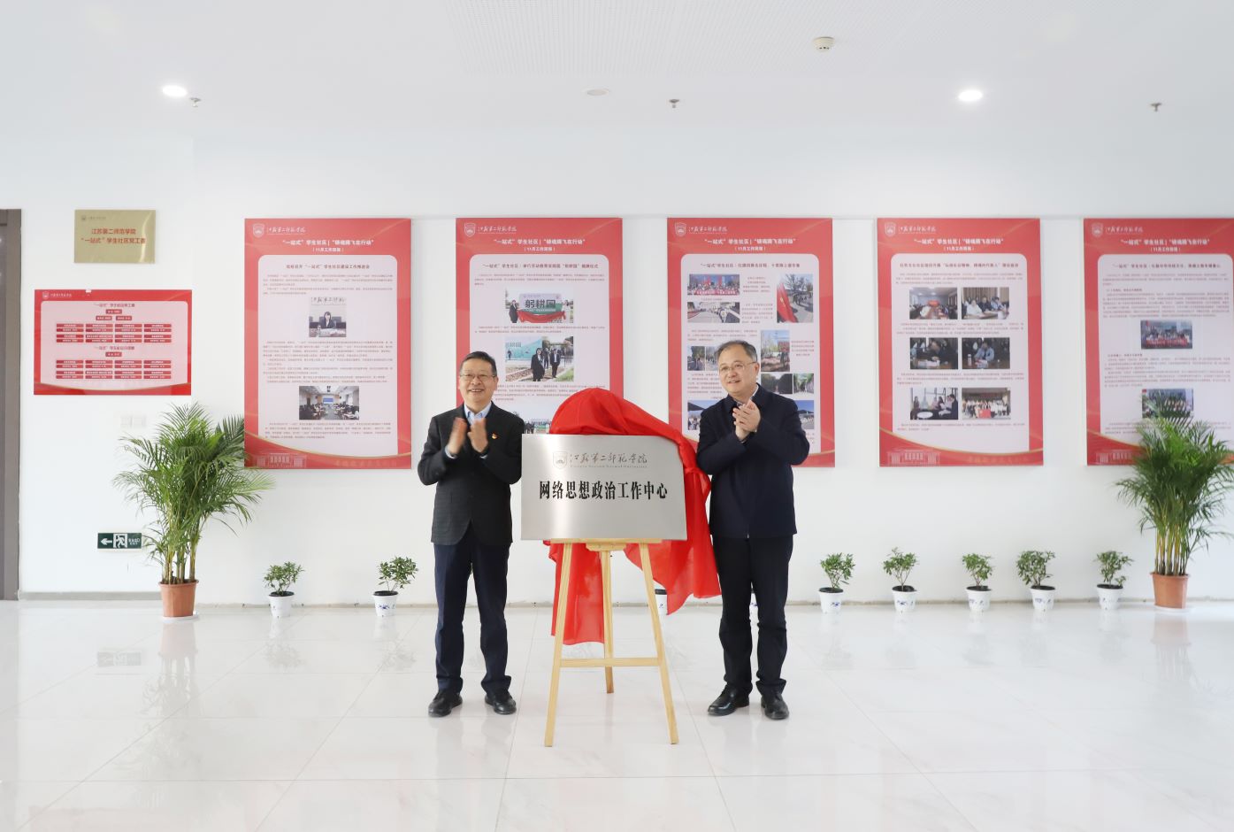徐子敏与王鲁沛共同为我校网络思政中心揭牌。省教育厅社政处党支部党员同志考察了我校“一站式”学生社区和教育部中华优秀传统文化传承基地。