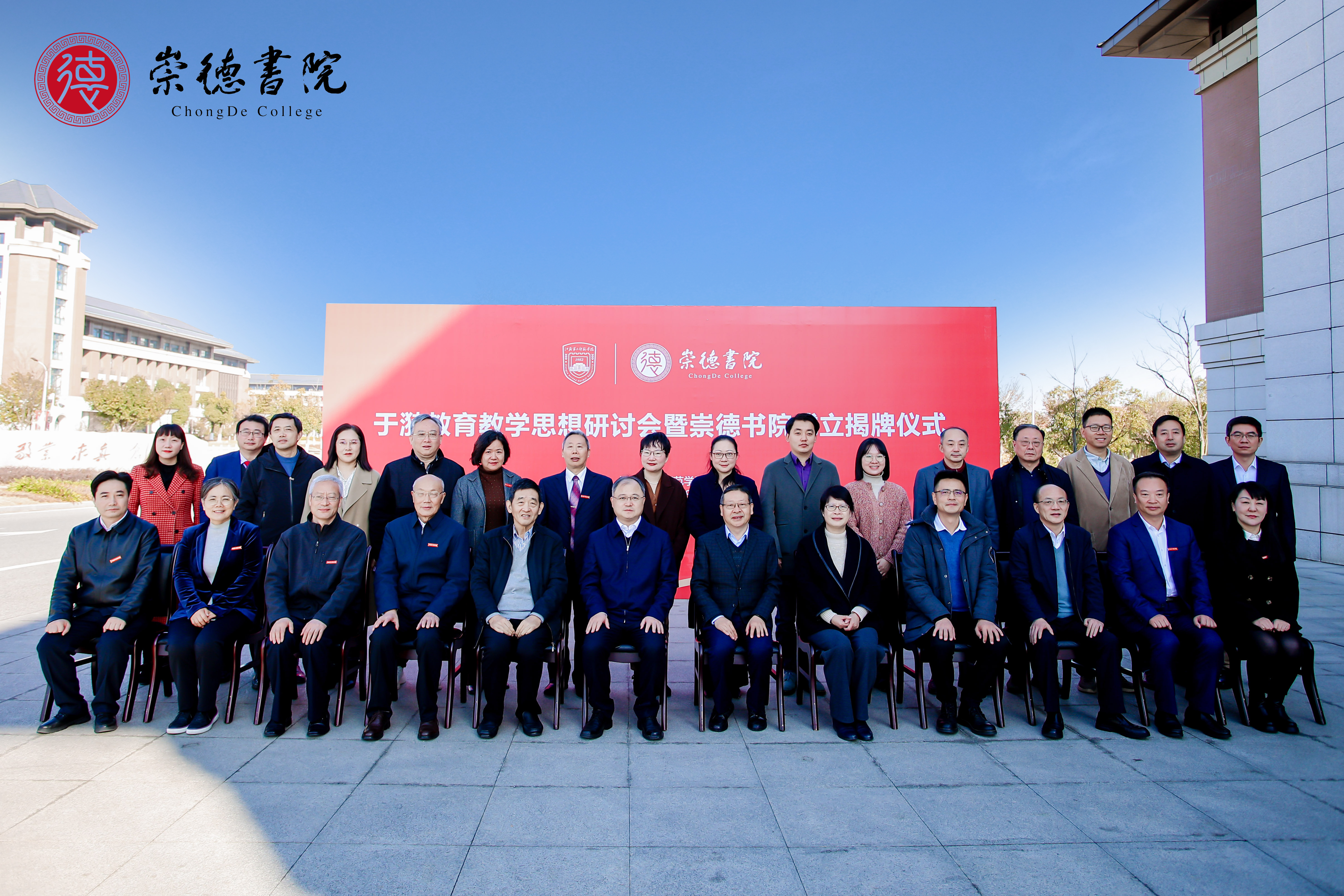 “崇德弘道,躬耕创新”。12月8日,我校在石湫校区敬业楼举行崇德书院成立揭牌仪式。江苏省教育厅一级巡视员徐子敏,上海教育出版社党委书记顾晓菁,上海教育出版社副社长庄晓明,上海教育出版社报刊分社社长、《语文学习》杂志执行主编、《于漪全集》总统筹易英华,上海教育出版社教育培训公司总经理张弛,上海教育出版社教辅分社副社长刘美文,上海教育出版社营销部主任朱丹瑾,江苏省教育科学研究院研究员、江苏省教育学会名誉会长杨九俊,江苏教育报刊总社总编辑、中国期刊协会教育期刊协会副主任委员赵建春,全体在宁校领导以及来自沪苏两地的专家学者出席本次活动。相关二级学院和职能部门负责人,师生代表参加了活动。