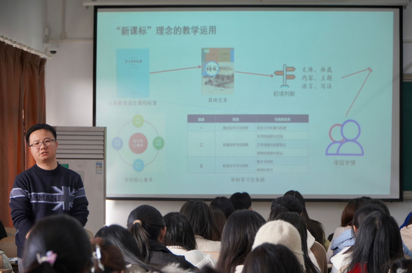 何欣围绕教师践行“立德树人”初心使命向学生分享了近年来教师在教育教学中的优秀案例,引领师范生不断自我完善;介绍了“新课标”理念在教学方面的运用,通过实例让学生充分了解教学理念的变革,促进自身更好发展。