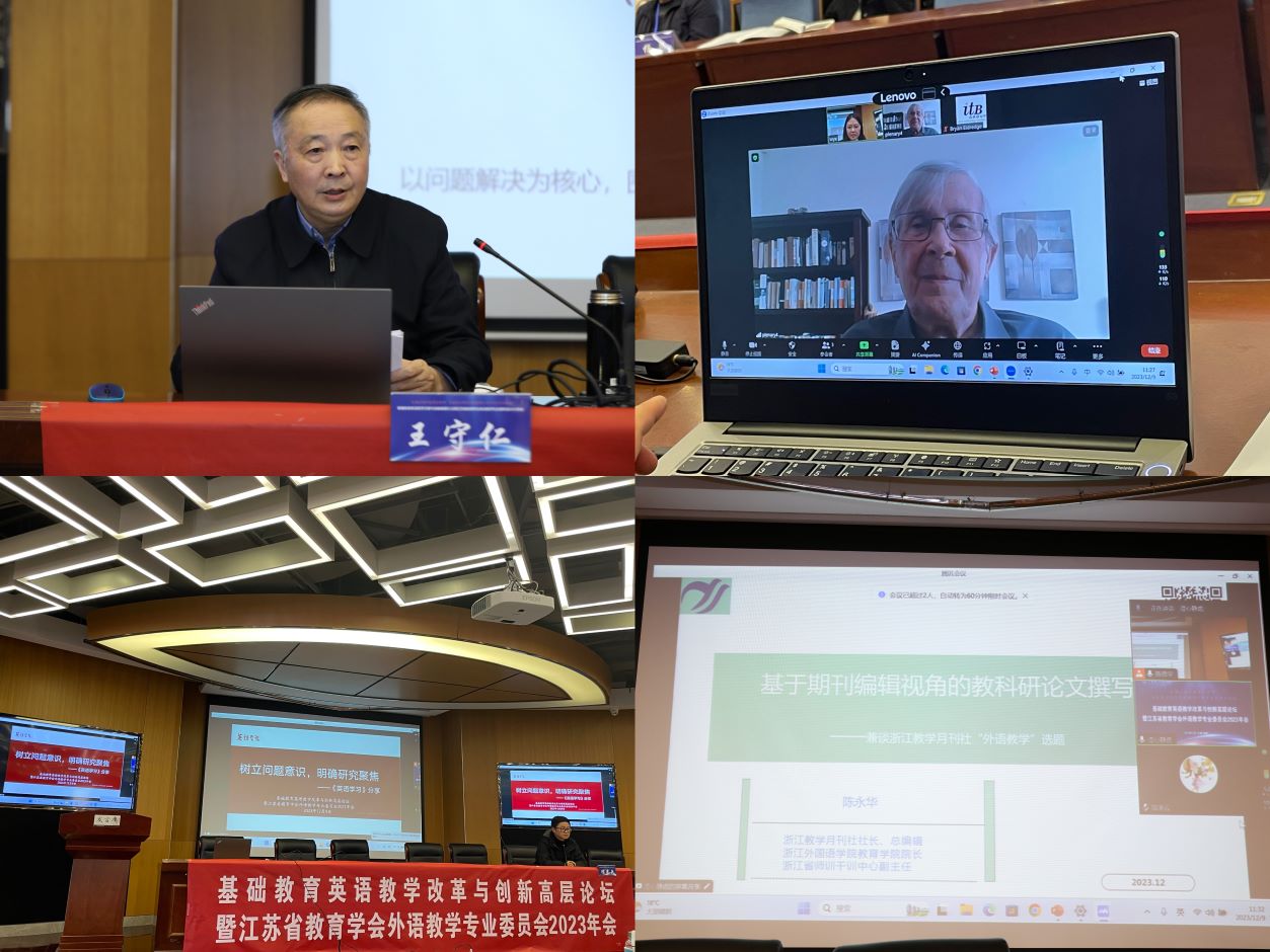 12月8日至9日,“弘扬和践行教育家精神”——江苏第二师范学院转设10周年系列学术论坛之基础教育英语教学改革与创新高层论坛暨江苏省教育学会外语教学专业委员会2023年会在江苏第二师范学院草场门校区顺利召开。本次论坛由江苏省教育学会外语教学专业委员会主办、江苏第二师范学院承办。出席论坛开幕式的有江苏第二师范学院党委常委、副校长梅景辉教授以及相关职能部门的负责人,教育部义务教育和普通高中英语课程标准修订组专家、南京大学教师发展中心主任、博士生导师王守仁教授,第二语言习得研究世界著名专家Rod Ellis教授,江苏省教育学会外语教学专业委员会第十届理事会理事长南京师范大学辛斌教授、第十一届理事会理事长南京师范大学王永祥教授,江苏省教育科学研究院何锋老师,浙江教学学刊社社长、浙江外国语学院教育学院院长陈永华教授,《英语学习》常务主编屈凌云,江苏省教育学会外语教学专业委员会第十一届理事会理事以及来自江苏各市的英语教育研究专家学者、中小学英语教研员和一线教师200余位。开幕式由江苏第二师范学院外国语学院院长张莉教授主持。