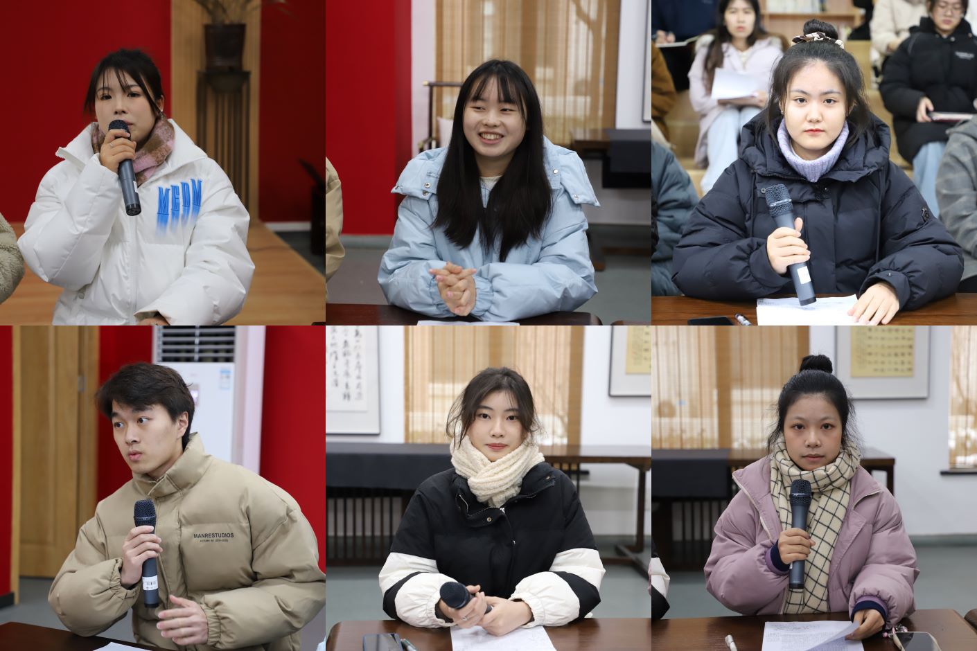 与会师生代表依次作交流发言,从自身的实际情况分享自己对于铸牢中华民族共同体意识的所思所感,也就民族特色文化活动、个人生涯发展规划等方面进行了研讨交流。