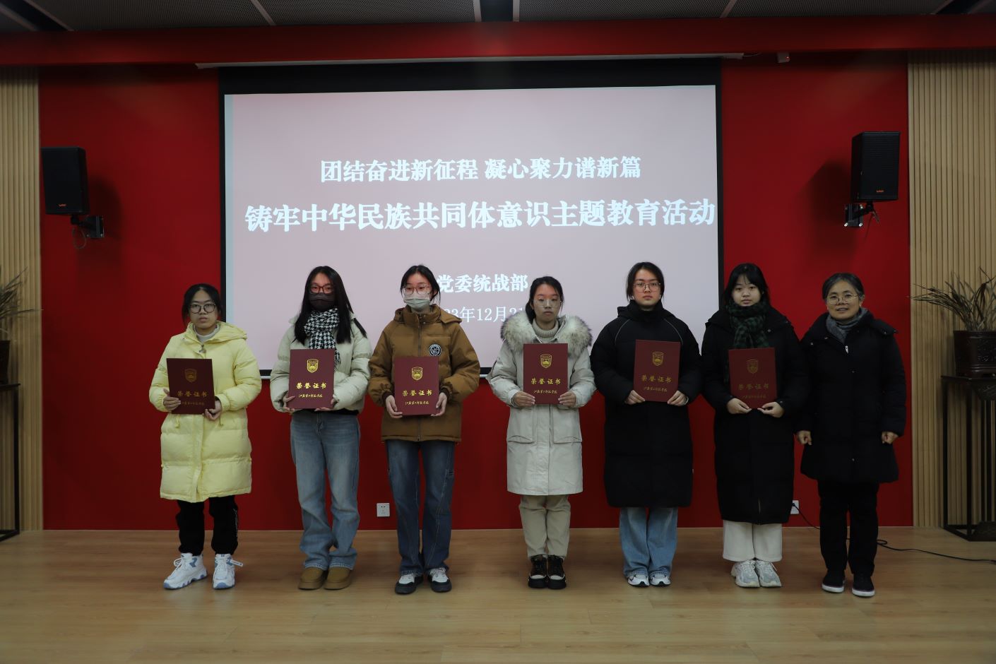 赵玉蓉指出,学校党委高度重视民族团结进步工作,以习近平总书记关于加强和改进民族工作的重要思想为指导,坚持全面落实立德树人根本任务,以铸牢中华民族共同体意识为主线,以传承中华优秀传统文化为切入点,依托我校“同心·传承”教育实践基地,开展铸牢中华民族共同体意识教育实践。希望同学们在今后的学习生活中,坚定政治认识,持续巩固和铸牢中华民族共同体意识,以实际行动维护国家、社会和校园安全稳定;以高标准严格要求自己,励志成长成才,五育并举提升能力素质,做德智体美劳全面发展的时代新人;学会聚焦自身优势、特长和价值选择发展道路,合理规划自己的人生路线。