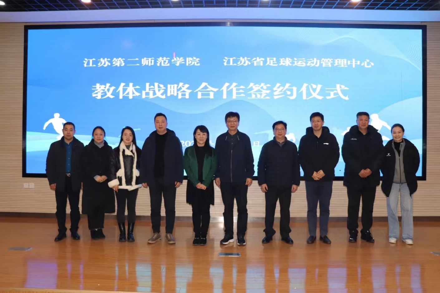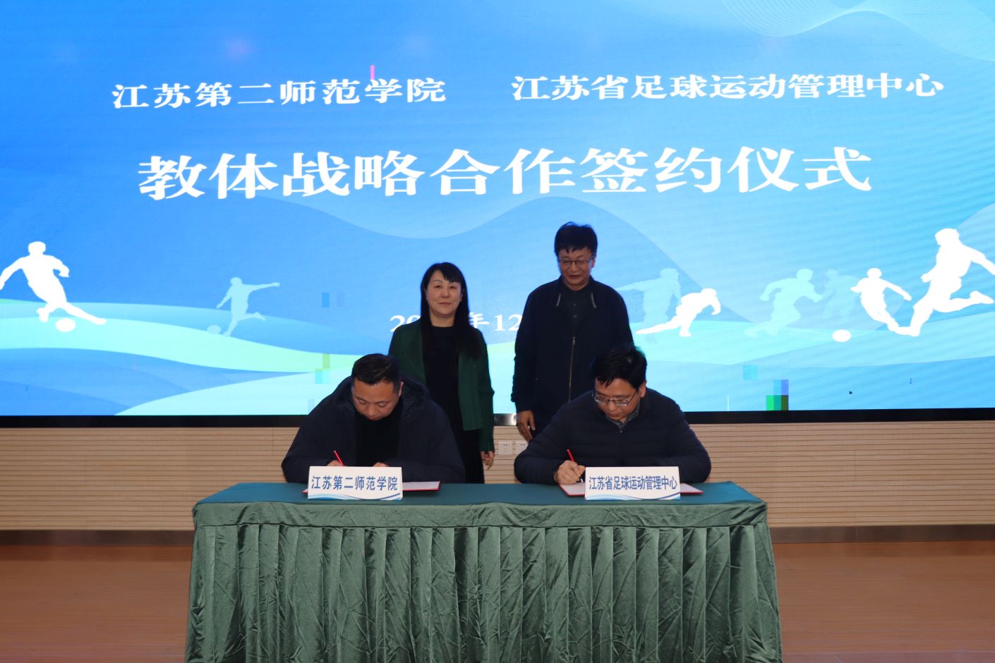 12月22日,我校与江苏省足球运动管理中心教体战略合作签约仪式在江苏省江宁足球训练基地举行。未来,双方将在足球运动专业指导、梯队球员文化教育、基地训练资源共享等方面广泛开展合作,合力打造江苏省融合体教示范项目。