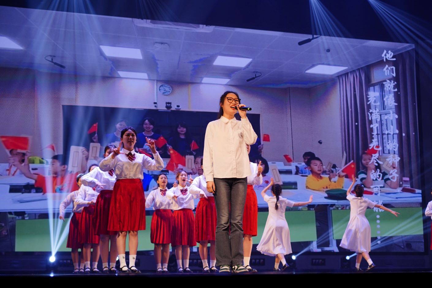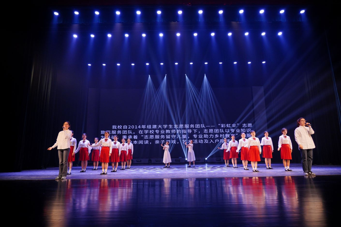 我校参赛作品《我们爱着这个世界》生动地将手语、演唱和舞蹈相融合,展现了我校“彩虹伞”志愿服务团队为乡村儿童开展形式多样的教学活动的情景,传递了二师学子“用脚步丈量世界,用青春播撒温暖”的支教理念。同学们配合默契,感情真挚,给在场的评委和观众留下了深刻印象,并最终获得三等奖。