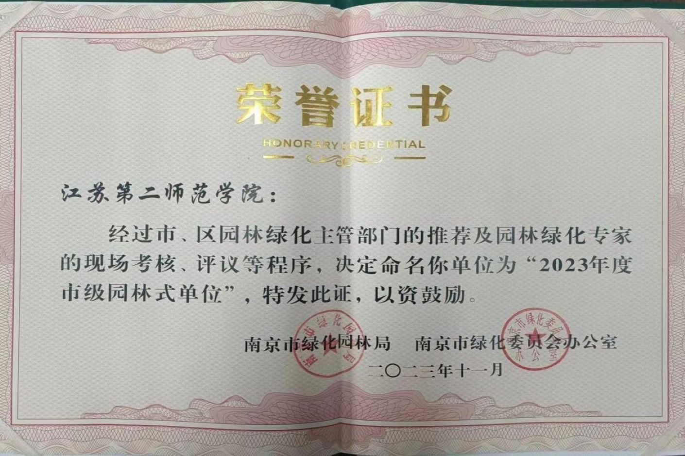 2.我校荣获南京市“园林式单位”称号
