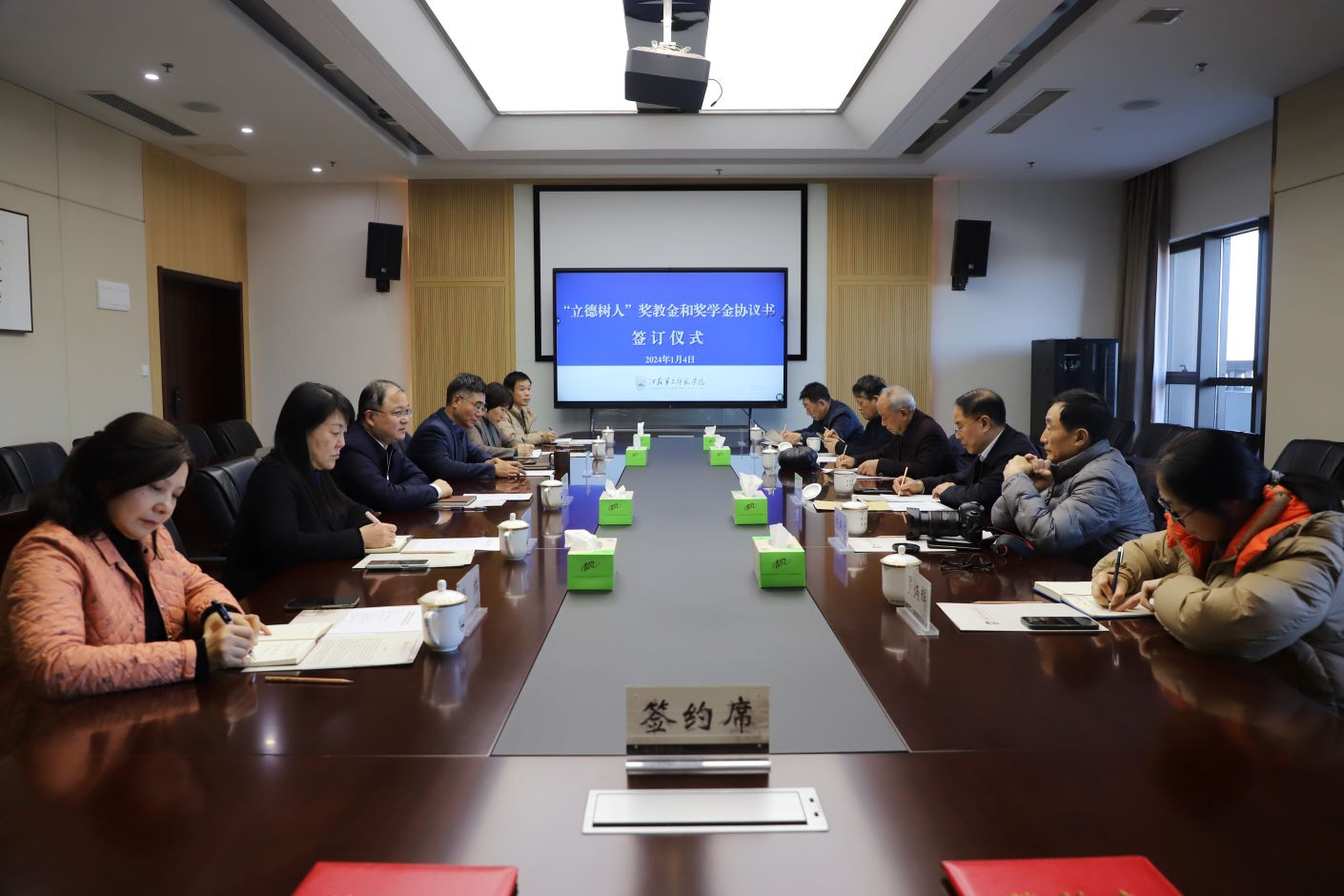 1月4日下午,江苏省教育基金会在我校设立“立德树人”奖教金和奖学金,协议书签订仪式在石湫校区崇德楼318会议室举行。江苏省教育基金会首任理事长、顾问、我校原校长祭彦加,江苏省教育基金会理事长步锦昆,我校党委书记王鲁沛,校长徐国华,党委副书记、副校长刘继红等出席签订仪式。江苏省教育基金会相关同志以及我校相关职能部门负责人参加仪式。王鲁沛主持仪式。