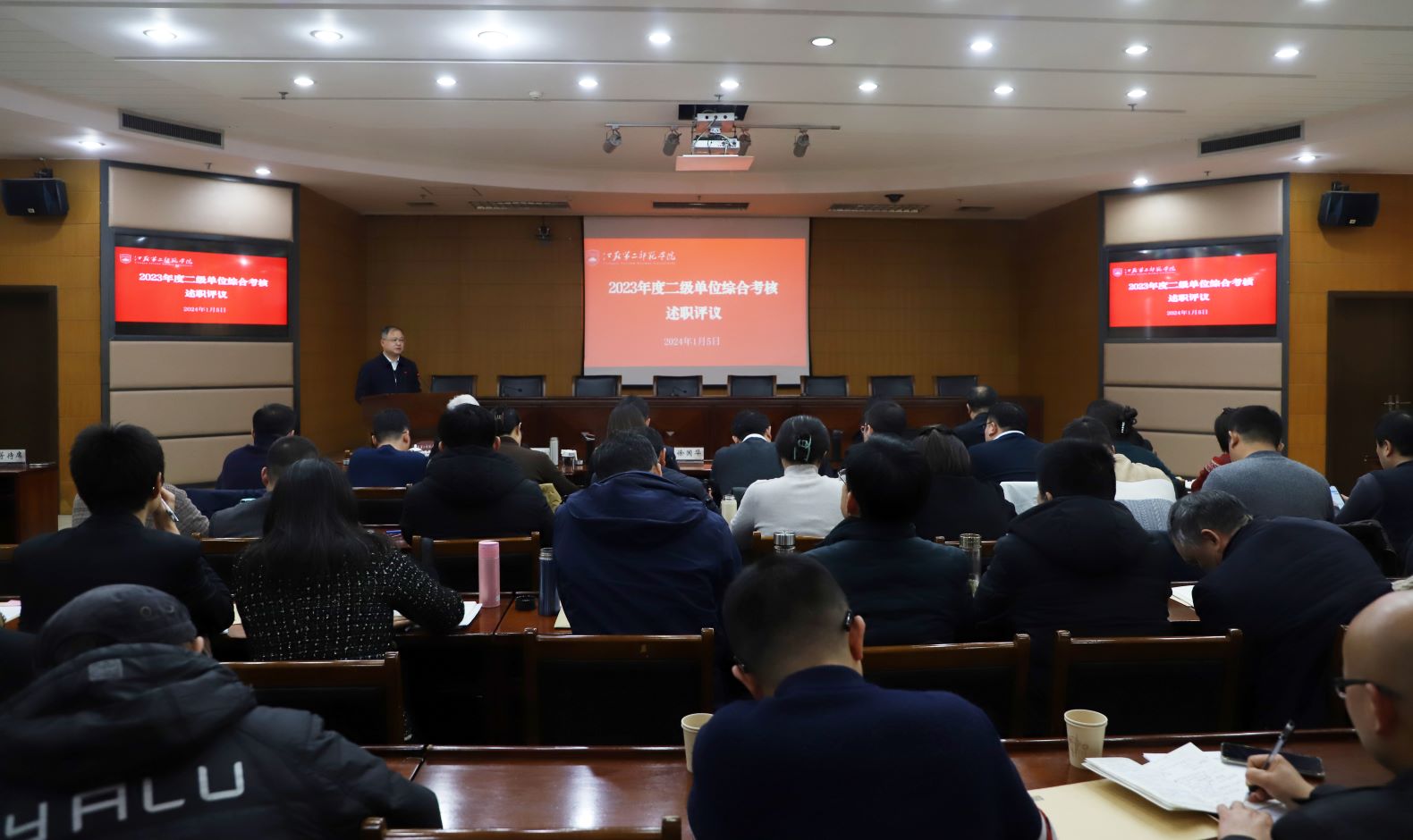 近日,学校党委在草场门校区教育科研楼511报告厅召开2023年度二级党组织书记抓基层党建述职评议会。党委书记王鲁沛主持会议并讲话。在校党员校领导、党委常委出席会议。