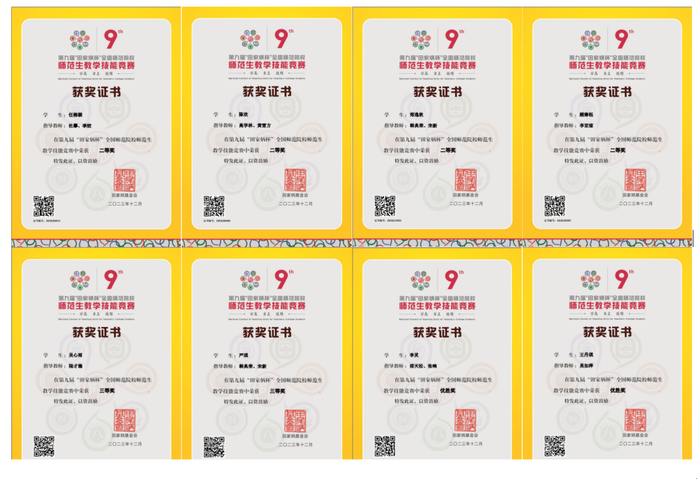 12月29至31日,第九届“田家炳杯”全国师范院校师范生教学技能竞赛决赛在浙江师范大学落下帷幕,我校学子经过激烈角逐,收获二等奖4项、三等奖2项、优胜奖2项,首次在国家级师范生教学技能竞赛取得全面性突破。
