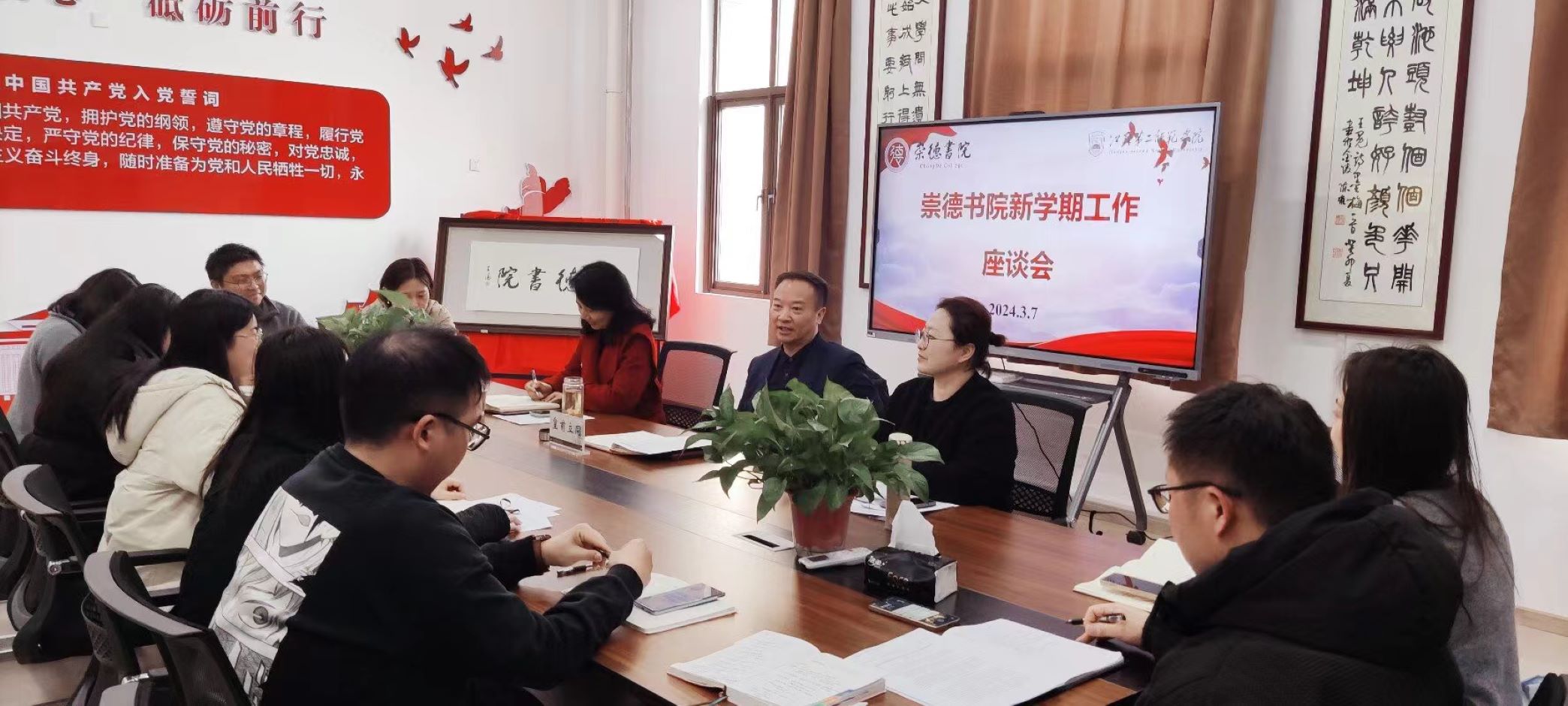 3月7日下午,崇德书院举行校长座谈会暨新学期第一次全体工作会议。校党委常委、副校长、教育学部主任、教育学部党工委书记(兼)皇甫立同,党委宣传部副部长、崇德书院党总支副书记王艳出席。崇德书院全体辅导员参会。会议由崇德书院党总支副书记、副院长王晶主持。