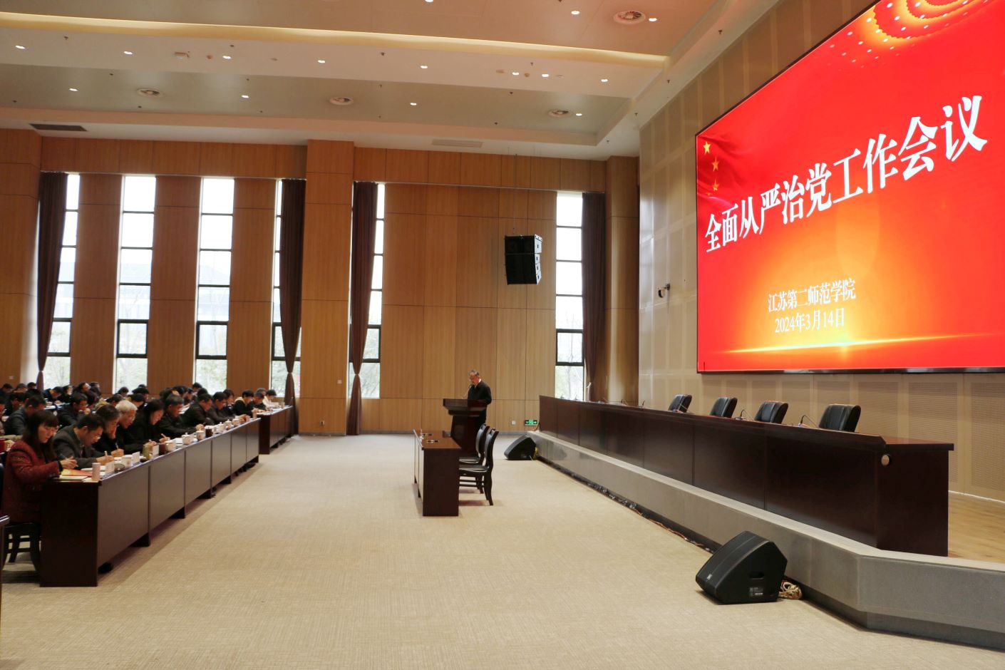 3月14日下午,我校在石湫校区敬业楼107会议室召开全面从严治党工作会议,深入学习贯彻习近平总书记关于党的自我革命的重要思想和二十届中央纪委三次全会、十四届省纪委四次全会精神,研究部署2024年全面从严治党工作任务。校党委书记王鲁沛出席会议并讲话,纪委书记崔燕作纪检监察工作报告。全体校领导,中层以上干部参加会议。