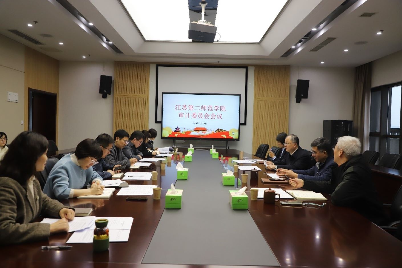 3月14日上午,我校在石湫校区召开审计委员会会议。校党委书记、审计委员会主任王鲁沛主持会议并讲话。会议深入学习了习近平总书记在二十届中央审计委员会第一次会议上的重要讲话,全国审计工作会议精神和江苏省委审计委员会会议精神。