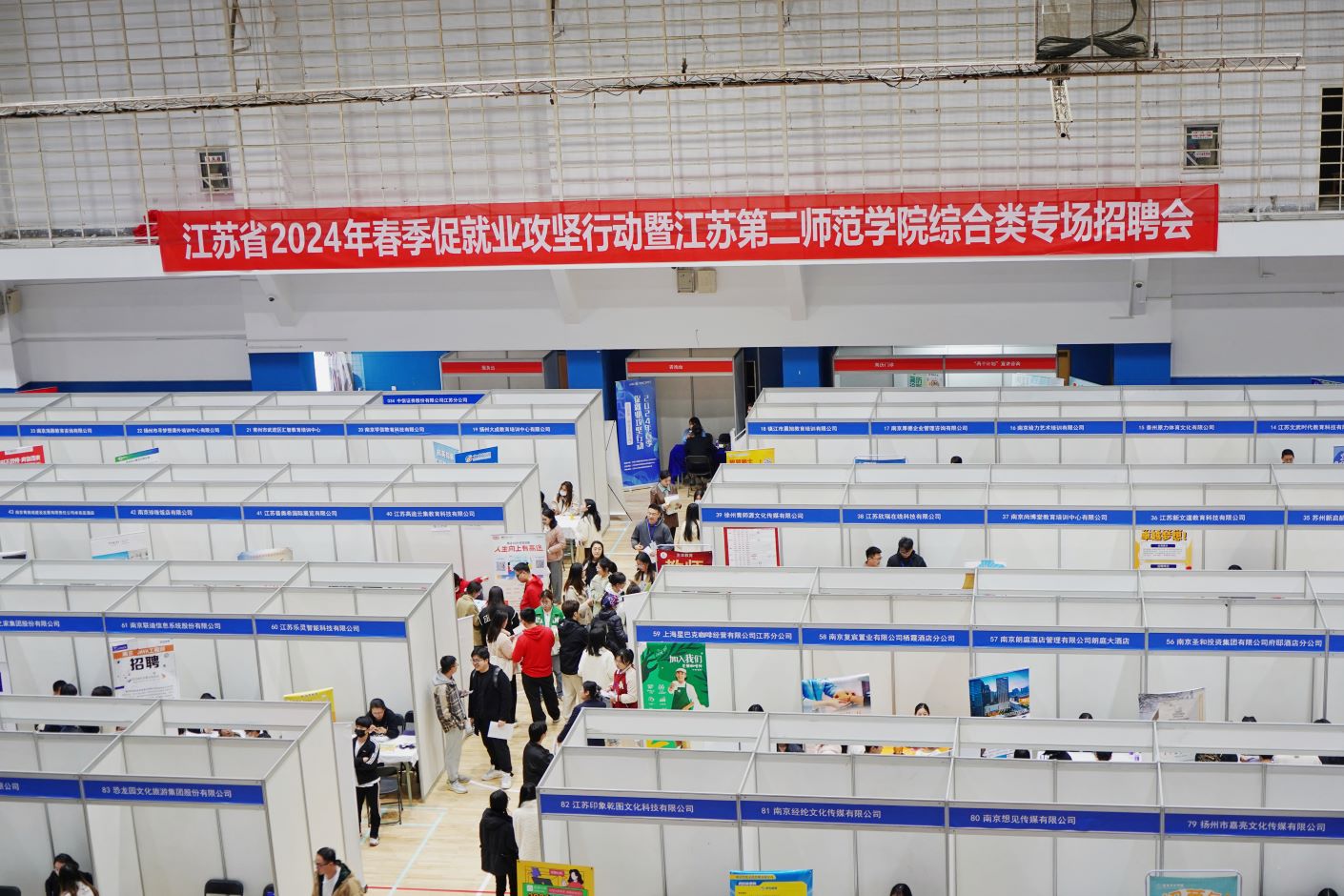 3月20日,江苏省2024年春季促就业攻坚行动暨江苏第二师范学院综合类专场招聘会在草场门校区体育馆顺利举办。此次活动由江苏省高校招生就业指导服务中心主办,我校招生就业处承办。校党委副书记、副校长刘继红、江苏省高校招生就业指导服务中心党总支书记缪榕楠一行莅临现场指导。