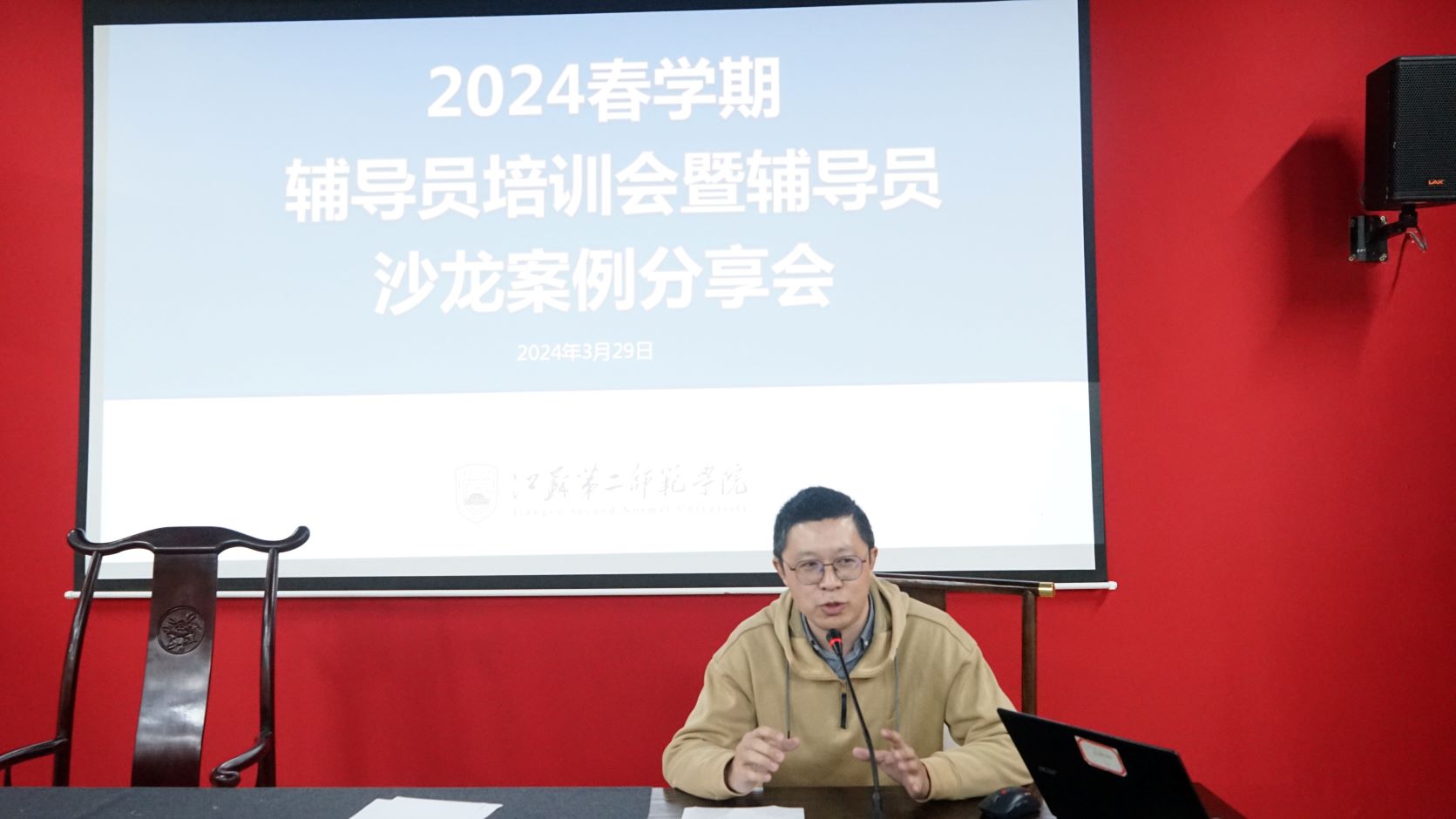 3月29日上午,2024年春学期辅导员培训会暨第一期辅导员沙龙活动在石湫校区尚美楼六艺大讲堂进行。学工处处长刘姝、副处长邵保刚出席会议,全体辅导员济济一堂,开展工作研讨、探讨工作方法、分享工作经验。会议由学工处副处长彭琳主持。