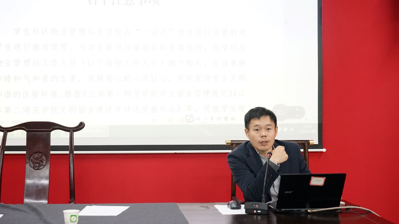 邵保刚对宿舍管理规定进行详尽阐释,明确了辅导员在宿舍管理中的职责和角色,他要求全体辅导员加强对文件的理解和学习,让“一站式”学生公寓进一步成为学生思想政治教育工作开展的主阵地。