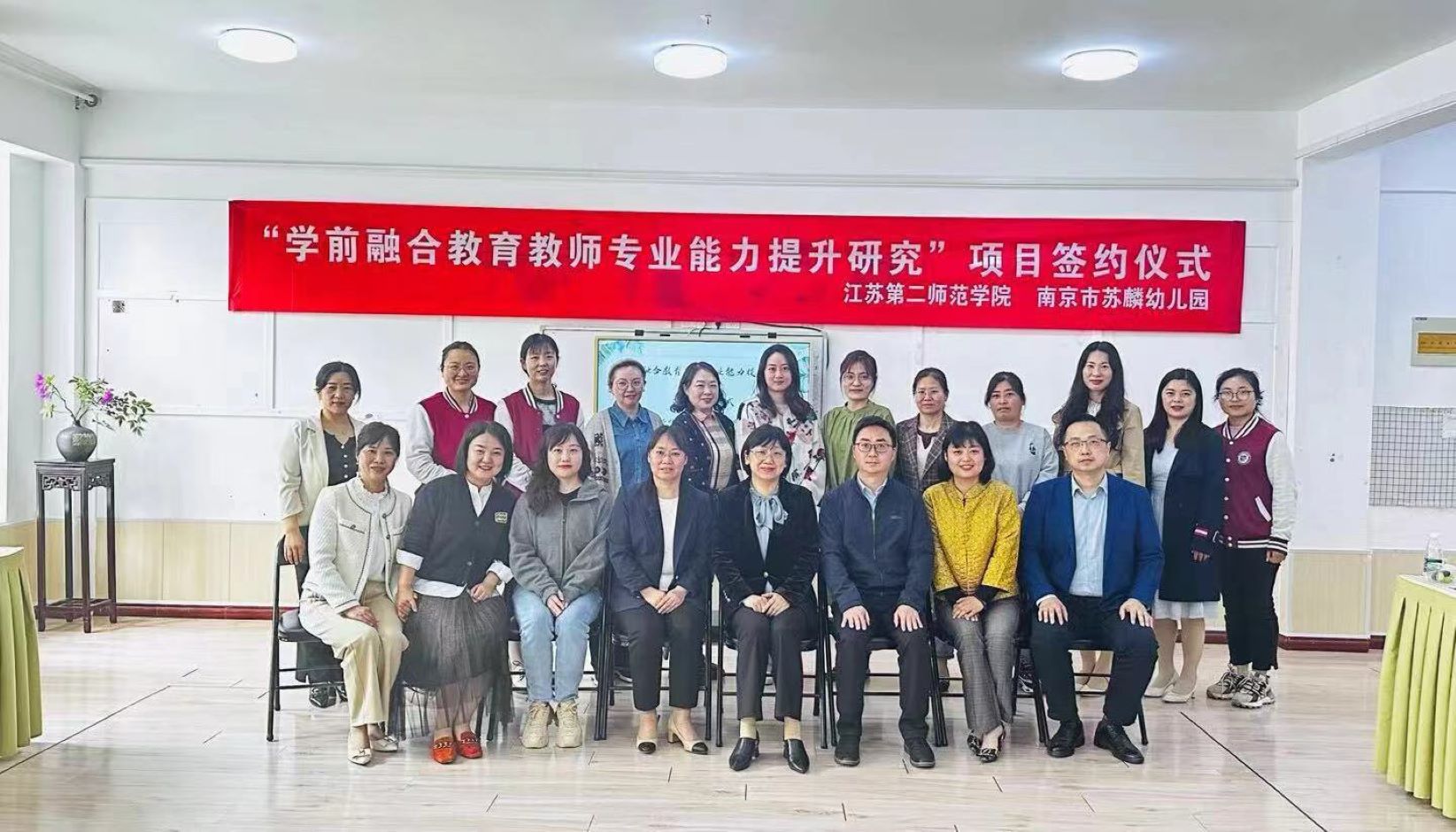 为进一步提升在学前教师教育领域的辐射力和影响力,着力拓展自身的社会服务功能,4月19日,学前教育学院与南京市苏麟幼儿园举行“学前融合教育教师专业能力提升研究”项目合作签约仪式。浦口区教育局教工委副书记、副局长史莉玲,特教专干袁咏琳,幼教科科长郭悦,我校学前教育学院党总支书记宋学军,院长田燕,孙卉博士,南京市苏麟幼儿园园长宋文仙以及全体教师参加了本次活动。