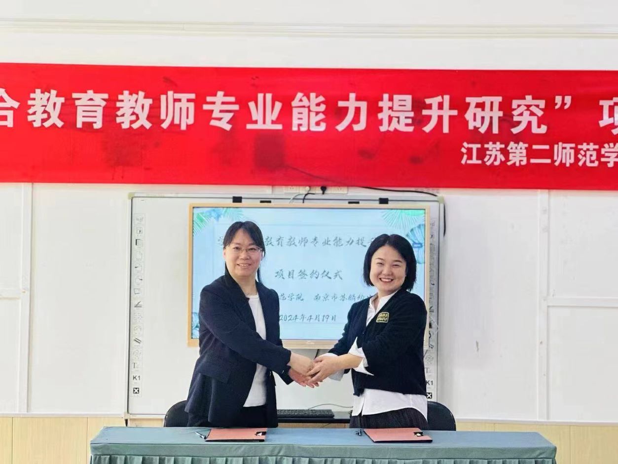 田燕对本次合作项目进行了深度解读。她表示,项目将锚定三方面的目标开展实施,一是通过组织学前融合教育教师专业发展能力提升研究活动,全面提升南京市苏麟幼儿园教师专业能力;二是形成南京市苏麟幼儿园学前融合教育特色,搭建学前融合教育支持平台;三是开展学前融合教育课题研究,凝练相关成果,相信在各方努力下,双方的共研共建一定能够取得丰硕的研究成果。随后,双方在浦口区教育局见证下,签订了合作项目文本。
